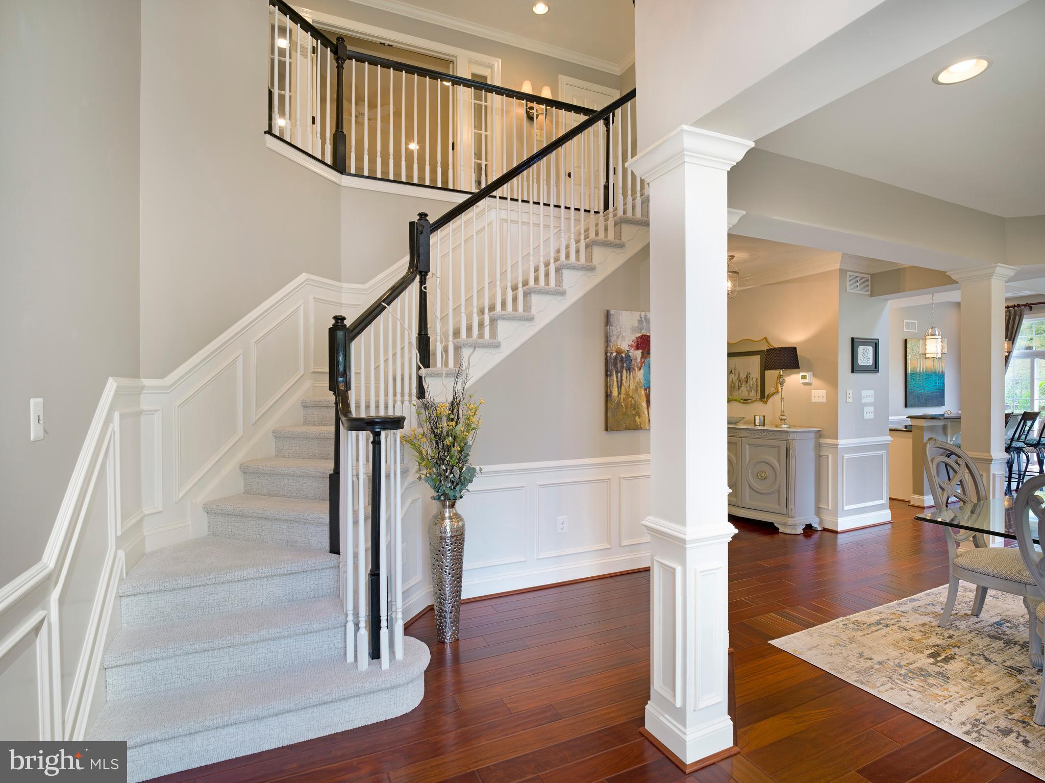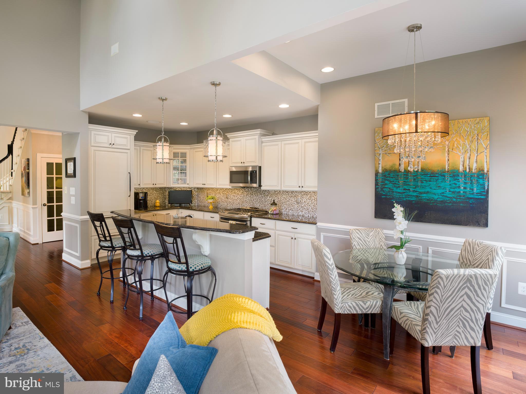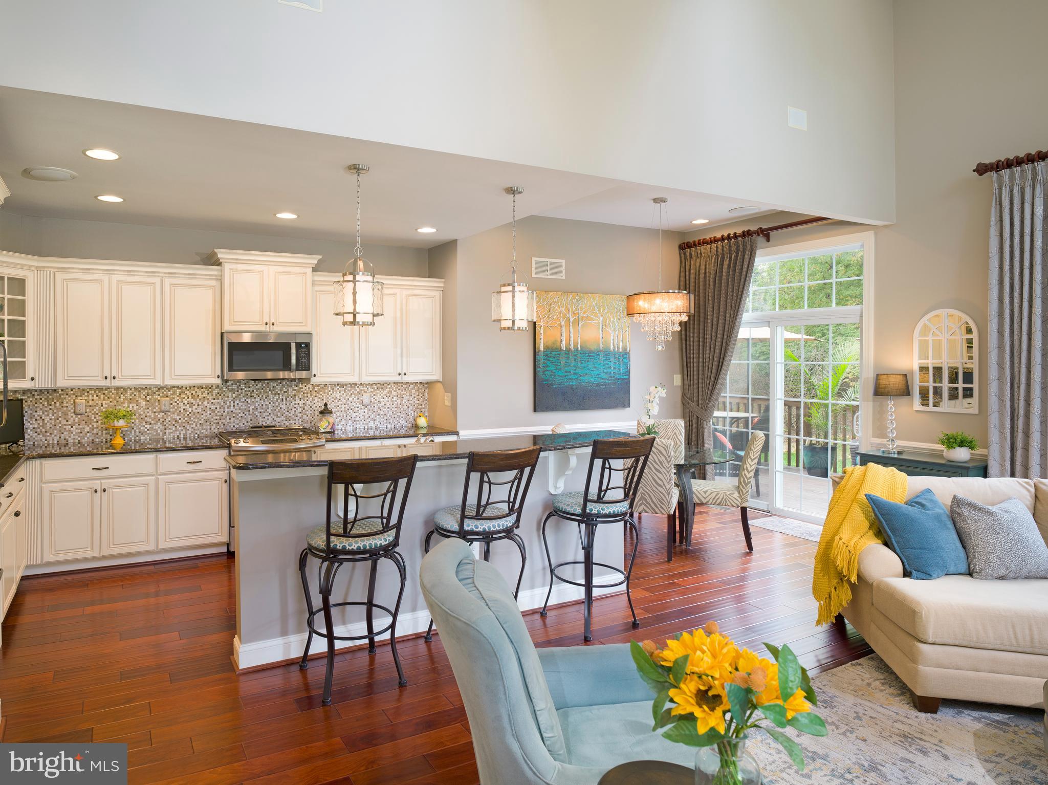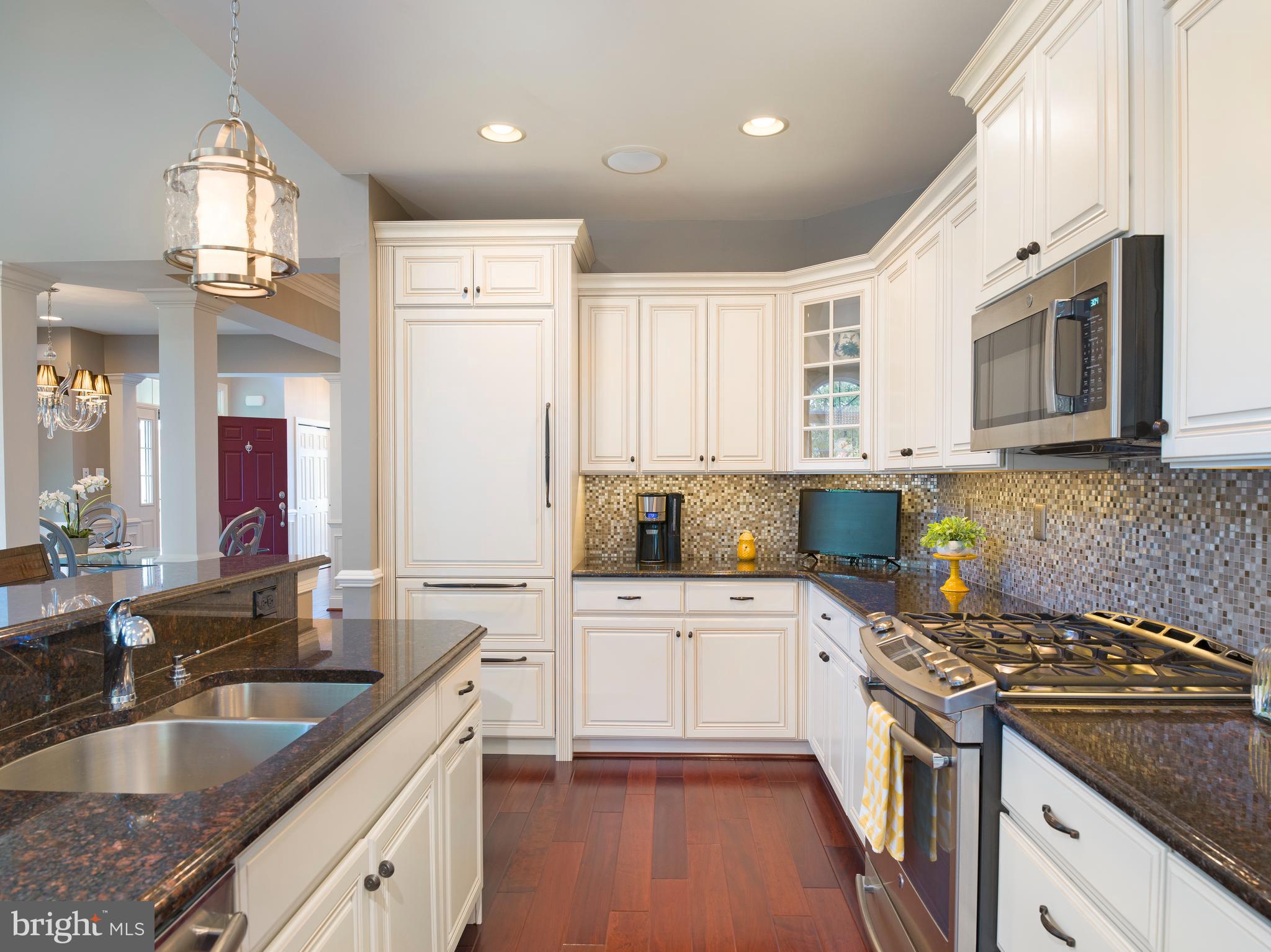 Inside, abundant natural light pours through windows on three exposures, highlighting the hand-scraped Brazilian cherry hardwood floors, extensive custom millwork, and dramatic open staircase. The gourmet kitchen is a true centerpiece with granite counters, custom cabinetry, upgraded appliances, and integrated audio -- seamlessly connecting to a soaring great room anchored by an elegant gas fireplace.