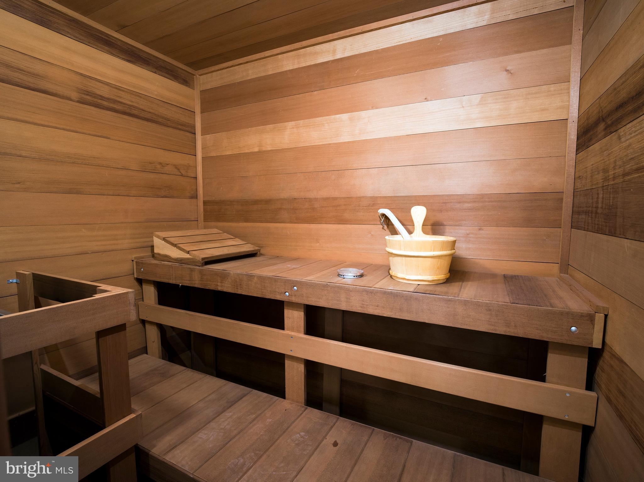 The finished, walkout lower level, featuring new carpeting, offers versatile additional living space, including a full bathroom with a sauna, kitchenette, wine closet, and ample storage.