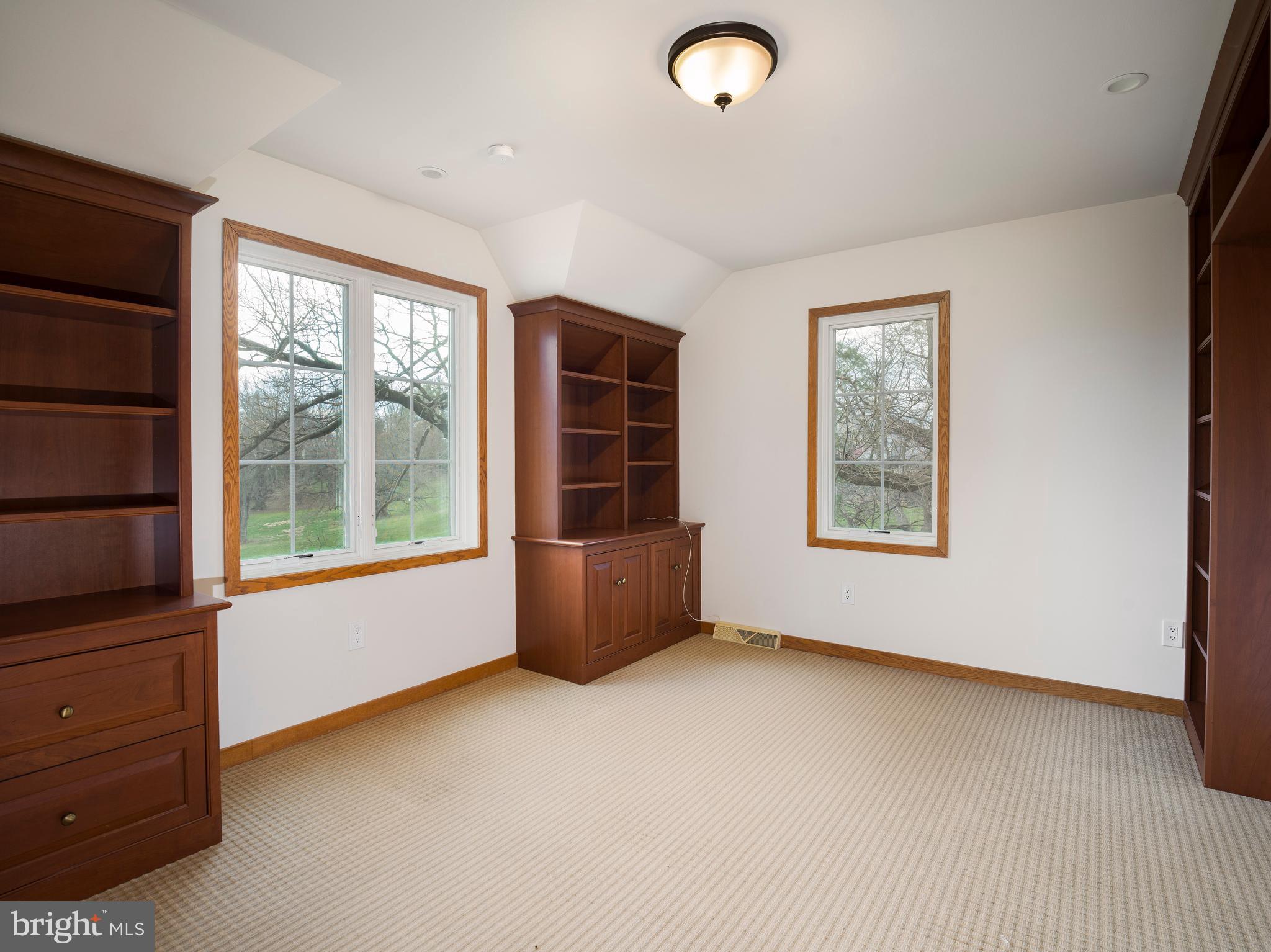 On the second floor, a loft area with built-in storage overlooks the great room. The elegant primary suite boasts vaulted ceilings, a hallway lined with fitted closets, a large custom walk-in closet, and a marble bathroom with double sinks, separate toilet rooms, a Jacuzzi tub, stall shower, and heated floors. This floor also houses three additional bedrooms and two bathrooms.