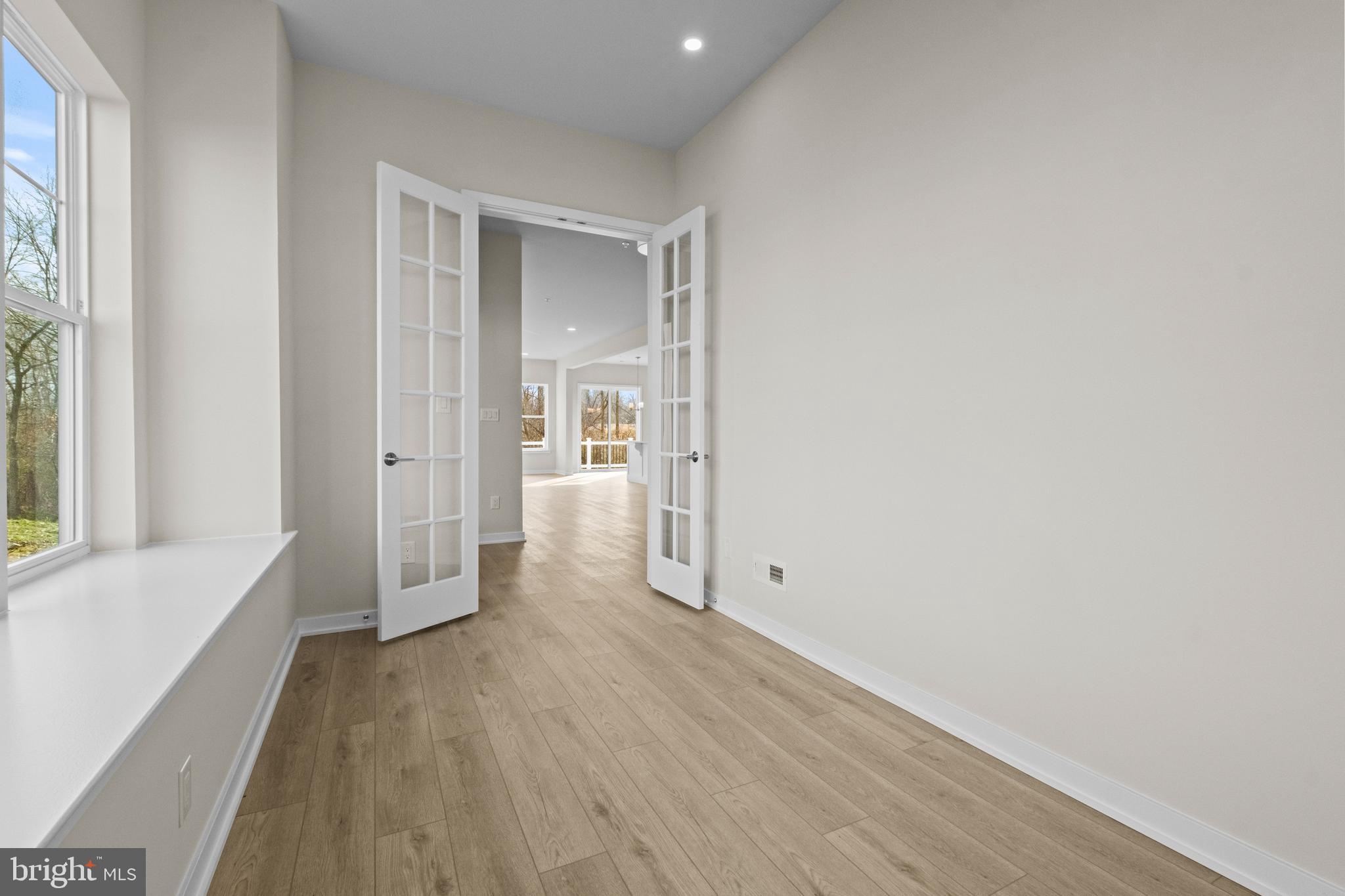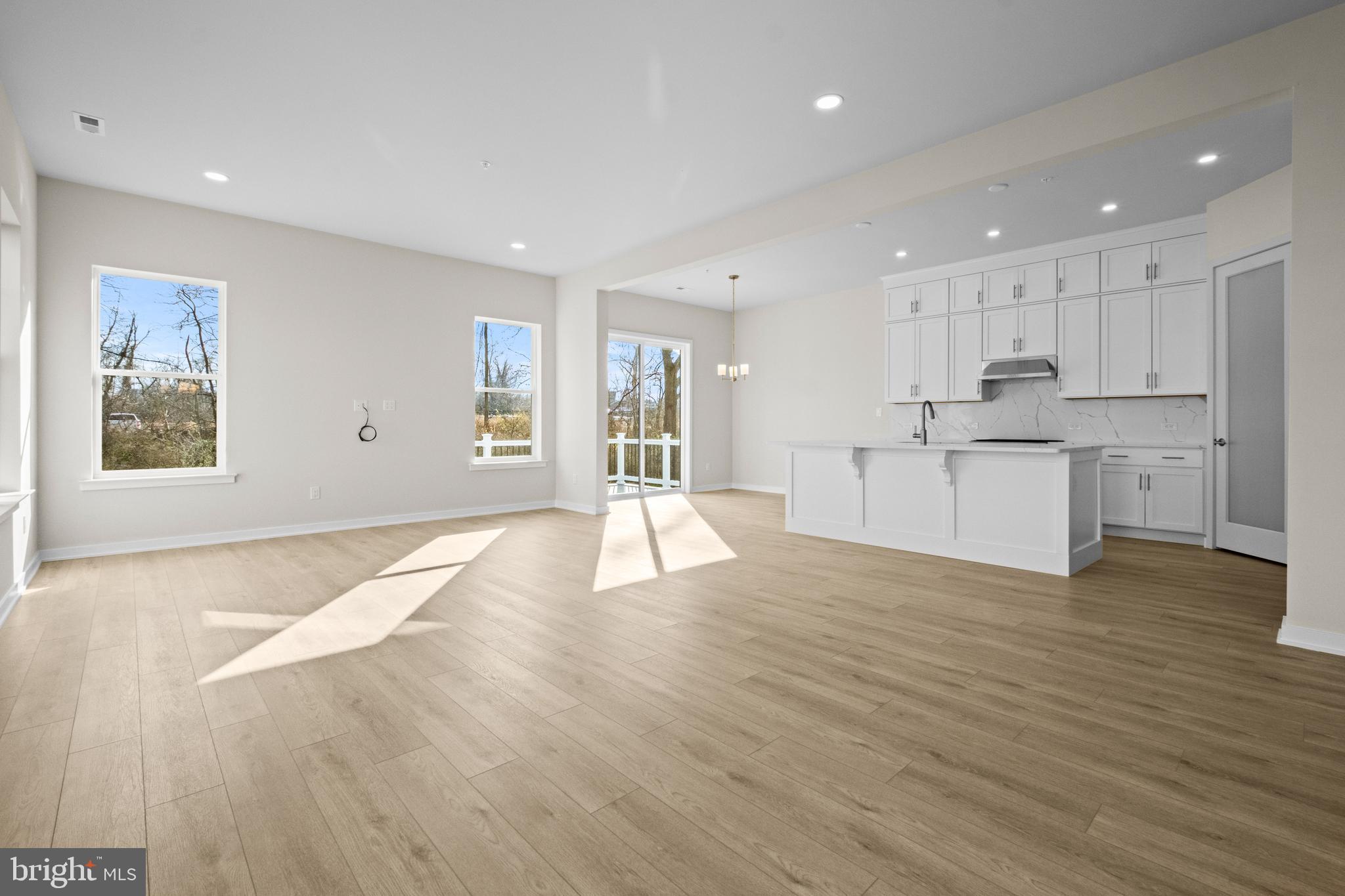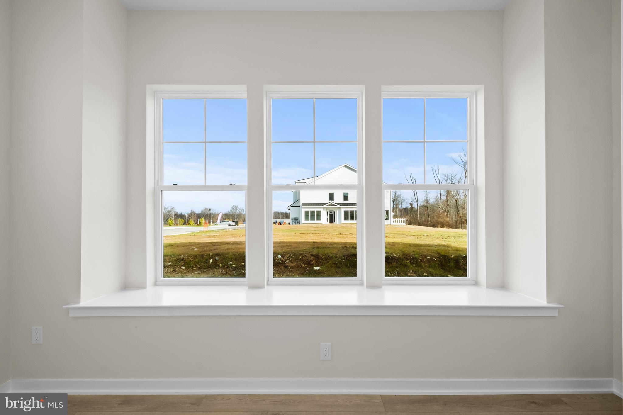 Designed for effortless living, the main level features wide-plank flooring, an open, airy flow, and an upgraded gourmet kitchen complete with 42-inch recessed maple cabinetry, granite counters, a hooded vent, Whirlpool stainless appliances, and a Sharp drawer microwave. Light-filled dining and living areas create a clean, modern backdrop for daily life or entertaining.