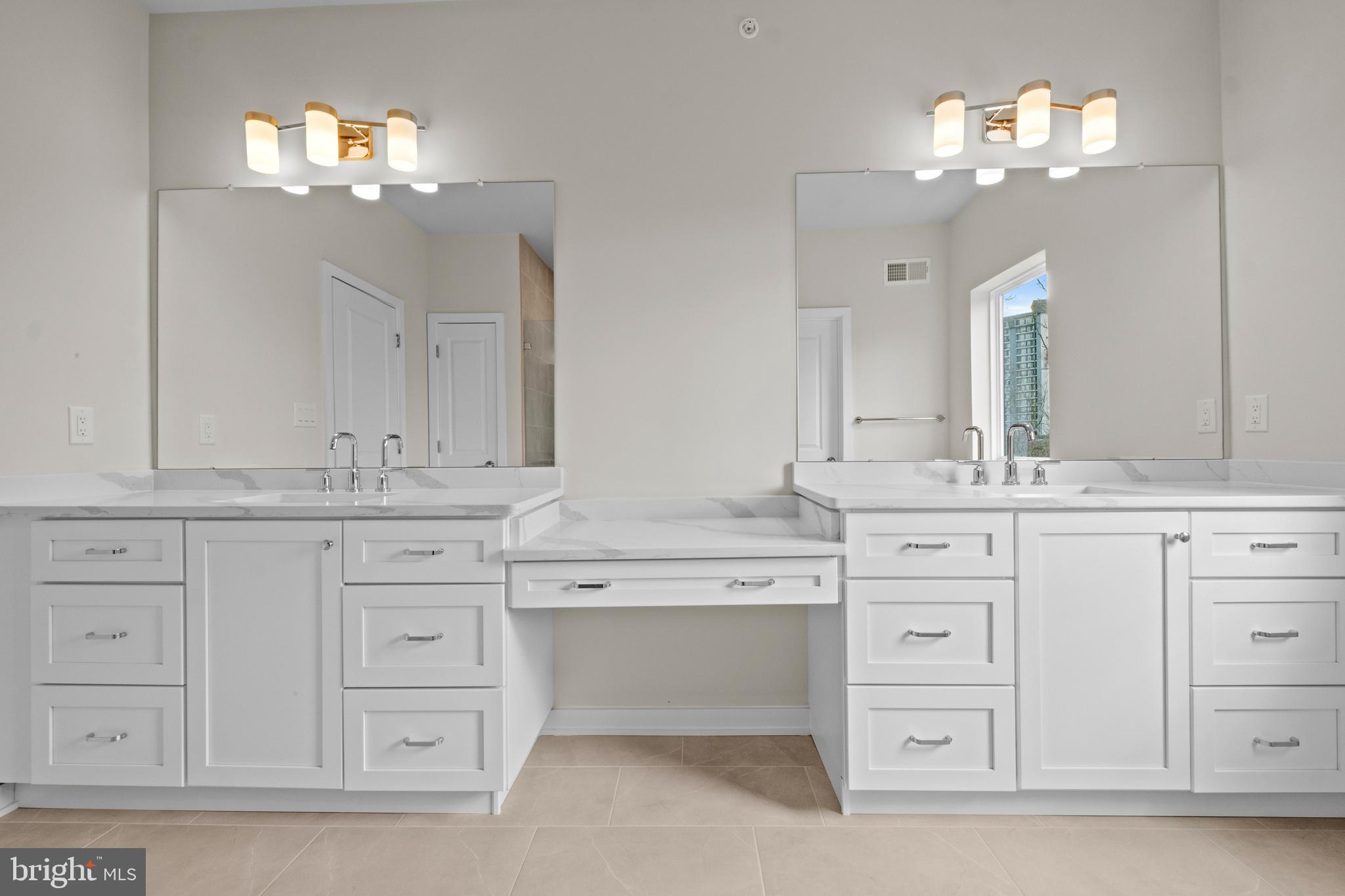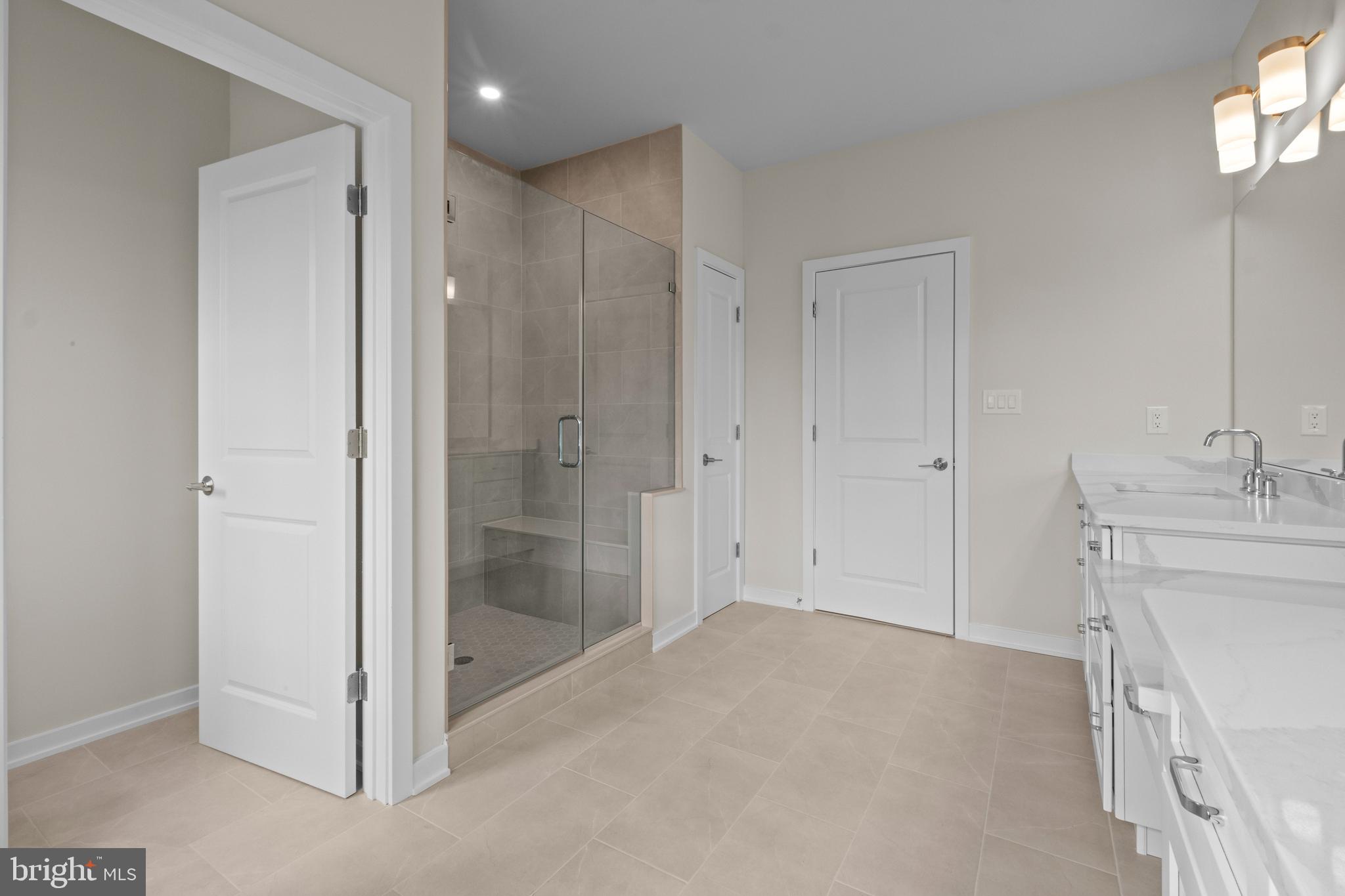 Upstairs, the owner's suite feels calm and generous with dual walk-in closets and a well-appointed bath featuring raised-panel vanities, chrome fixtures, and a glass-enclosed tiled shower. Two additional bedrooms, a full hall bath, and a convenient laundry room complete this level.