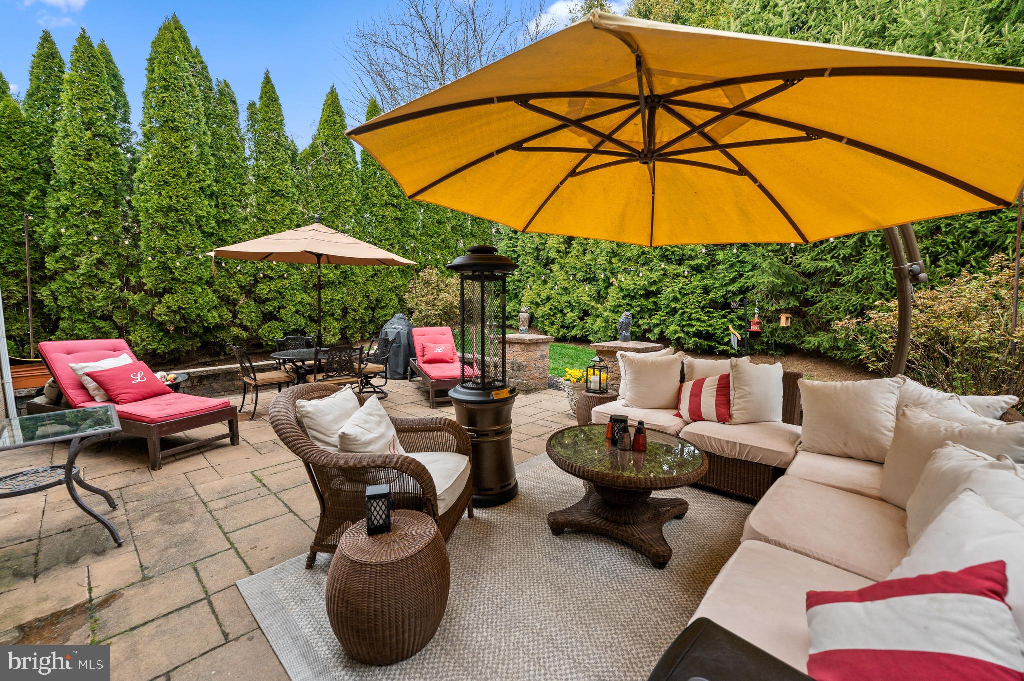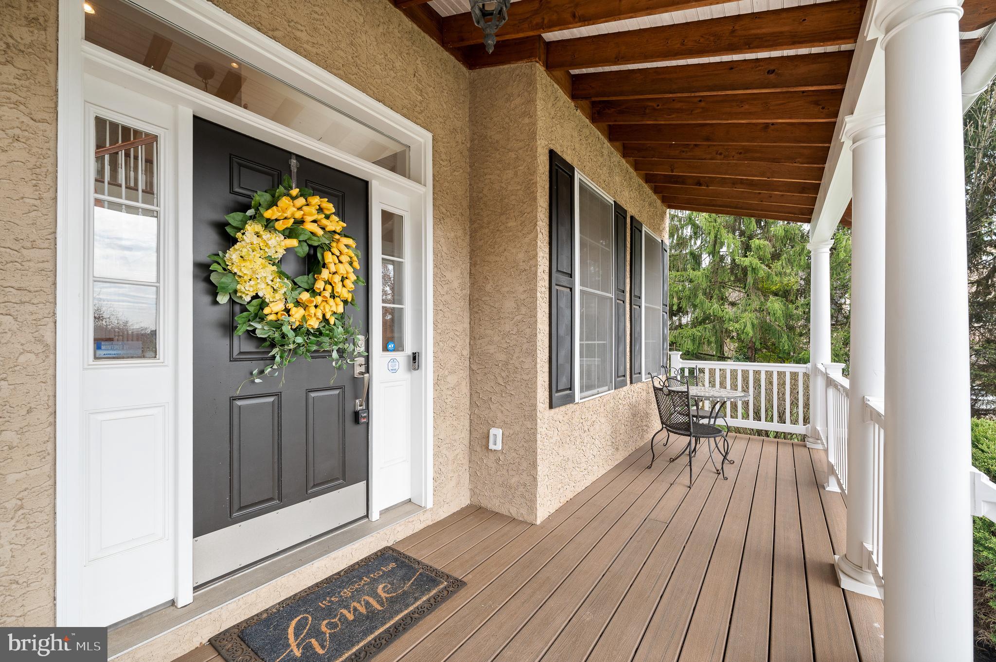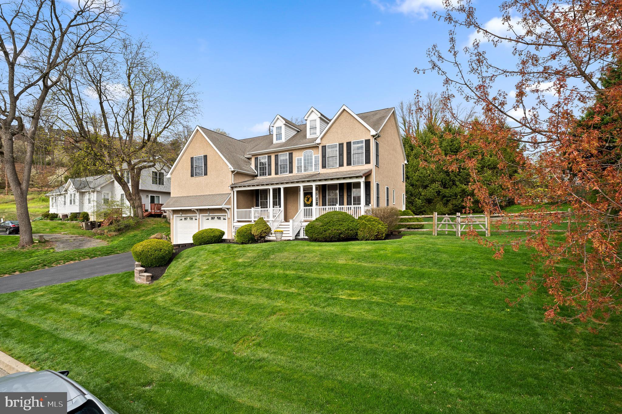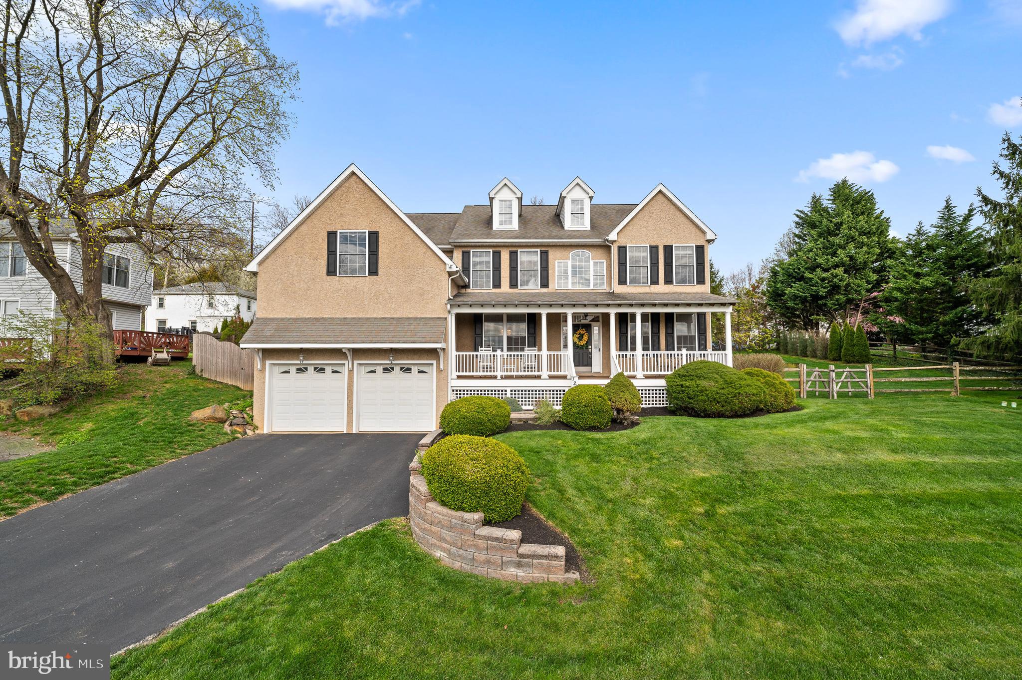 This stunning home exudes beauty, brightness, and luxury, boasting an upgraded interior and a modern open layout perfect for today's discerning buyers. Nestled in a lovely and private setting, its ultra-convenient location near major transportation routes (76 and 476) enhances its appeal. The covered front porch offers a perfect vantage point to watch family activities in the safe, quiet cul-de-sac environment. Thoughtfully renovated, this residence showcases numerous improvements, including a gorgeous gourmet kitchen (2015) featuring upgraded cabinetry, Quartzite countertops, and high-end appliances by Wolf, Samsung, and Bosch. The luxurious primary bath (2015) is appointed with white cabinetry, heated marble flooring, Quartzite countertops, and upscale fixtures. A finished lower level (2014) adds to the allure with its gym, bar, custom cabinetry, and full bathroom. The airy, light-filled living spaces feature cherry hardwood flooring and abundant windows offering lovely views of greenery. Highlights of the first floor include a 2-story family room with a gas fireplace, a study/library, a breakfast room connecting the gourmet kitchen and family room, a mudroom accessing the laundry room and 2-car garage, and a powder room with tiled inlay. The spacious living and dining rooms, adorned with decorative moldings, are ideal for hosting friends and family. Upstairs, a hardwood-floored hallway leads to the luxurious primary suite, complete with a tray ceiling bedroom, spacious sitting room, walk-in closet, and dreamy renovated tile bathroom with heated flooring. Three additional bedrooms are enhanced by cherry hardwood flooring and ceiling fans. Outside, a new terrace (2014) provides an inviting space for outdoor relaxation. This home epitomizes comfort, convenience, and timeless elegance, offering an exceptional living experience for its fortunate residents.