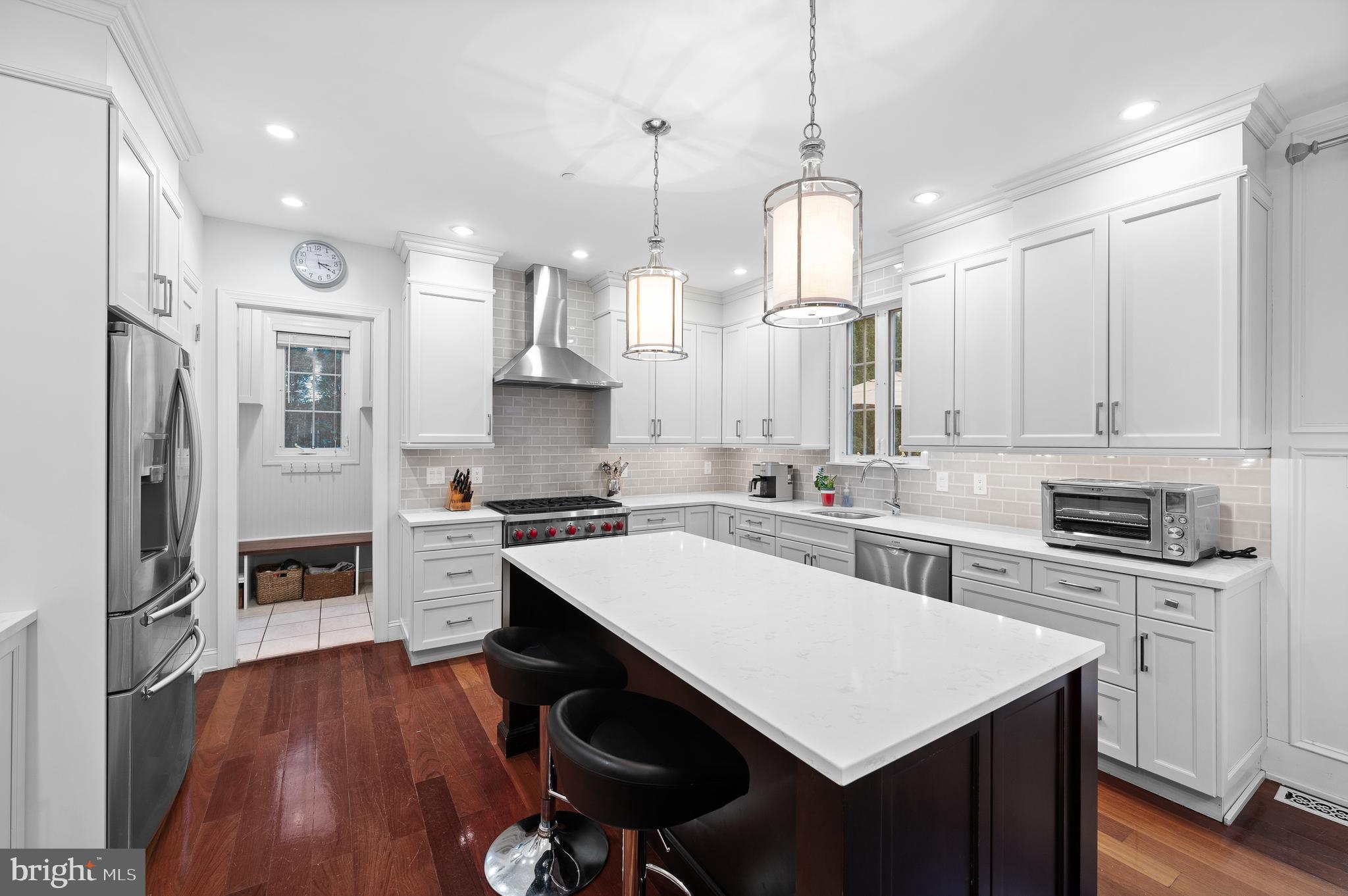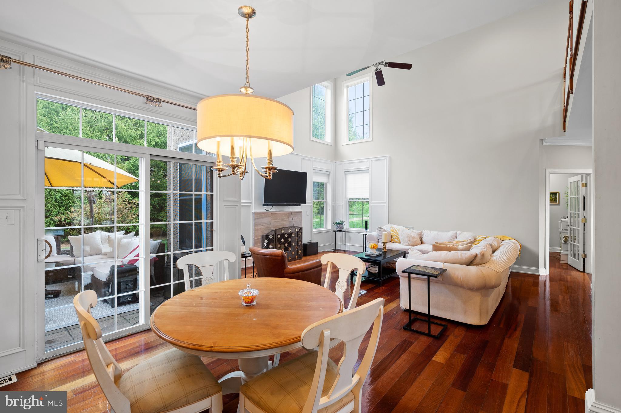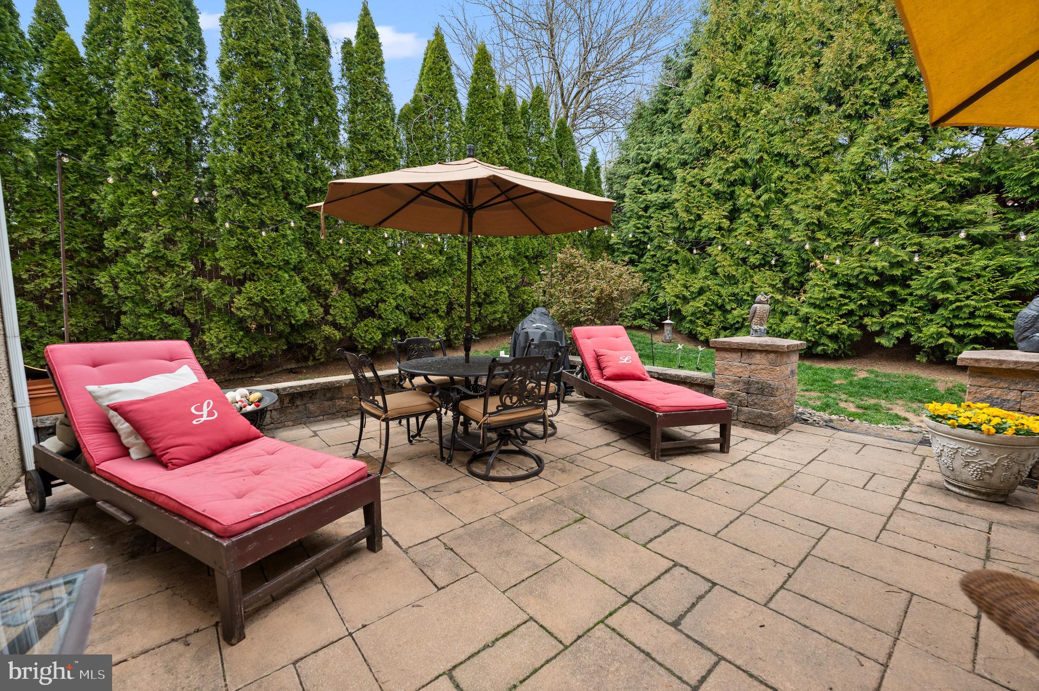 This stunning home exudes beauty, brightness, and luxury, boasting an upgraded interior and a modern open layout perfect for today's discerning buyers. Nestled in a lovely and private setting, its ultra-convenient location near major transportation routes (76 and 476) enhances its appeal. The covered front porch offers a perfect vantage point to watch family activities in the safe, quiet cul-de-sac environment. Thoughtfully renovated, this residence showcases numerous improvements, including a gorgeous gourmet kitchen (2015) featuring upgraded cabinetry, Quartzite countertops, and high-end appliances by Wolf, Samsung, and Bosch. The luxurious primary bath (2015) is appointed with white cabinetry, heated marble flooring, Quartzite countertops, and upscale fixtures. A finished lower level (2014) adds to the allure with its gym, bar, custom cabinetry, and full bathroom. The airy, light-filled living spaces feature cherry hardwood flooring and abundant windows offering lovely views of greenery. Highlights of the first floor include a 2-story family room with a gas fireplace, a study/library, a breakfast room connecting the gourmet kitchen and family room, a mudroom accessing the laundry room and 2-car garage, and a powder room with tiled inlay. The spacious living and dining rooms, adorned with decorative moldings, are ideal for hosting friends and family. Upstairs, a hardwood-floored hallway leads to the luxurious primary suite, complete with a tray ceiling bedroom, spacious sitting room, walk-in closet, and dreamy renovated tile bathroom with heated flooring. Three additional bedrooms are enhanced by cherry hardwood flooring and ceiling fans. Outside, a new terrace (2014) provides an inviting space for outdoor relaxation. This home epitomizes comfort, convenience, and timeless elegance, offering an exceptional living experience for its fortunate residents.