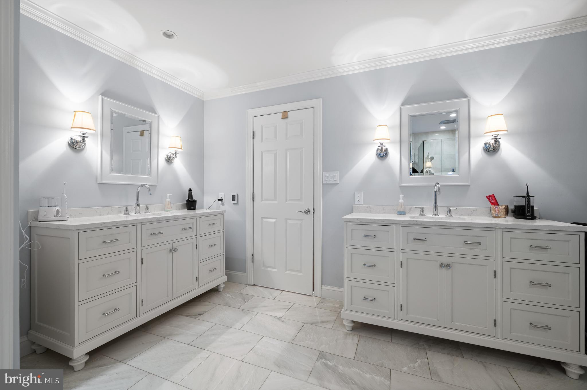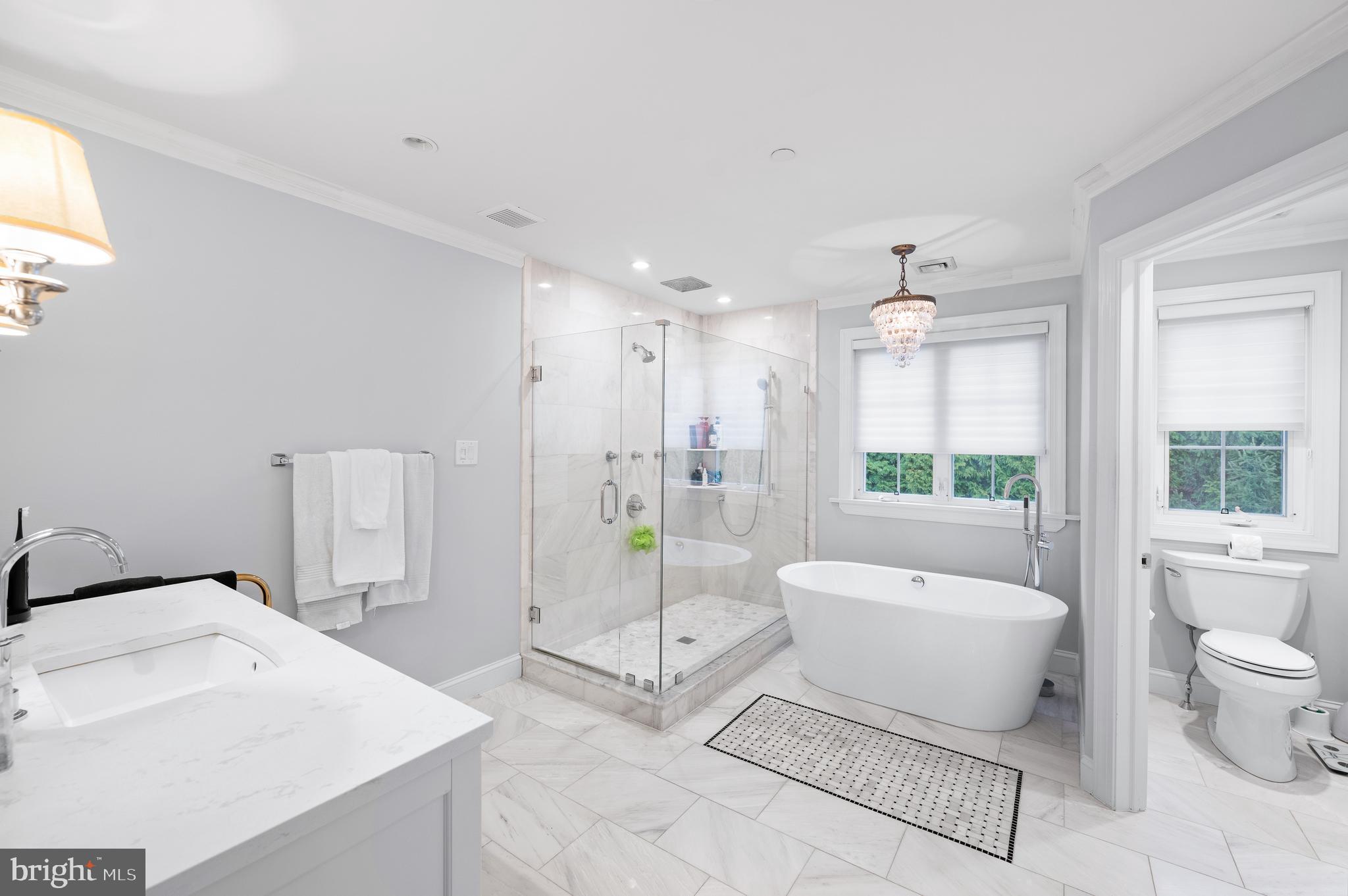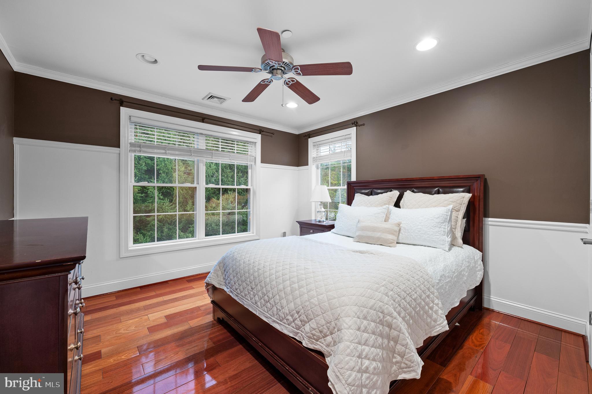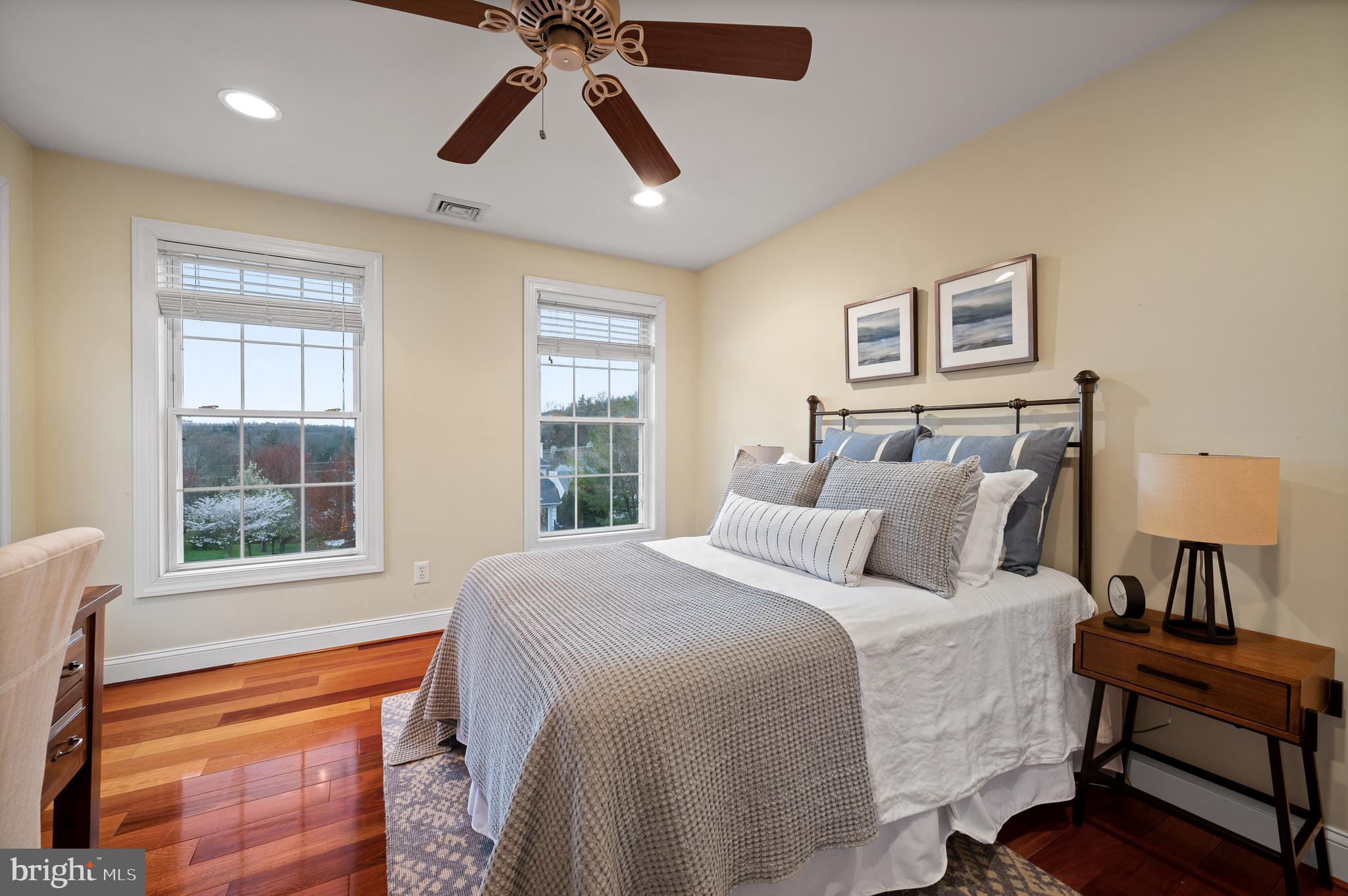 This stunning home exudes beauty, brightness, and luxury, boasting an upgraded interior and a modern open layout perfect for today's discerning buyers. Nestled in a lovely and private setting, its ultra-convenient location near major transportation routes (76 and 476) enhances its appeal. The covered front porch offers a perfect vantage point to watch family activities in the safe, quiet cul-de-sac environment. Thoughtfully renovated, this residence showcases numerous improvements, including a gorgeous gourmet kitchen (2015) featuring upgraded cabinetry, Quartzite countertops, and high-end appliances by Wolf, Samsung, and Bosch. The luxurious primary bath (2015) is appointed with white cabinetry, heated marble flooring, Quartzite countertops, and upscale fixtures. A finished lower level (2014) adds to the allure with its gym, bar, custom cabinetry, and full bathroom. The airy, light-filled living spaces feature cherry hardwood flooring and abundant windows offering lovely views of greenery. Highlights of the first floor include a 2-story family room with a gas fireplace, a study/library, a breakfast room connecting the gourmet kitchen and family room, a mudroom accessing the laundry room and 2-car garage, and a powder room with tiled inlay. The spacious living and dining rooms, adorned with decorative moldings, are ideal for hosting friends and family. Upstairs, a hardwood-floored hallway leads to the luxurious primary suite, complete with a tray ceiling bedroom, spacious sitting room, walk-in closet, and dreamy renovated tile bathroom with heated flooring. Three additional bedrooms are enhanced by cherry hardwood flooring and ceiling fans. Outside, a new terrace (2014) provides an inviting space for outdoor relaxation. This home epitomizes comfort, convenience, and timeless elegance, offering an exceptional living experience for its fortunate residents.