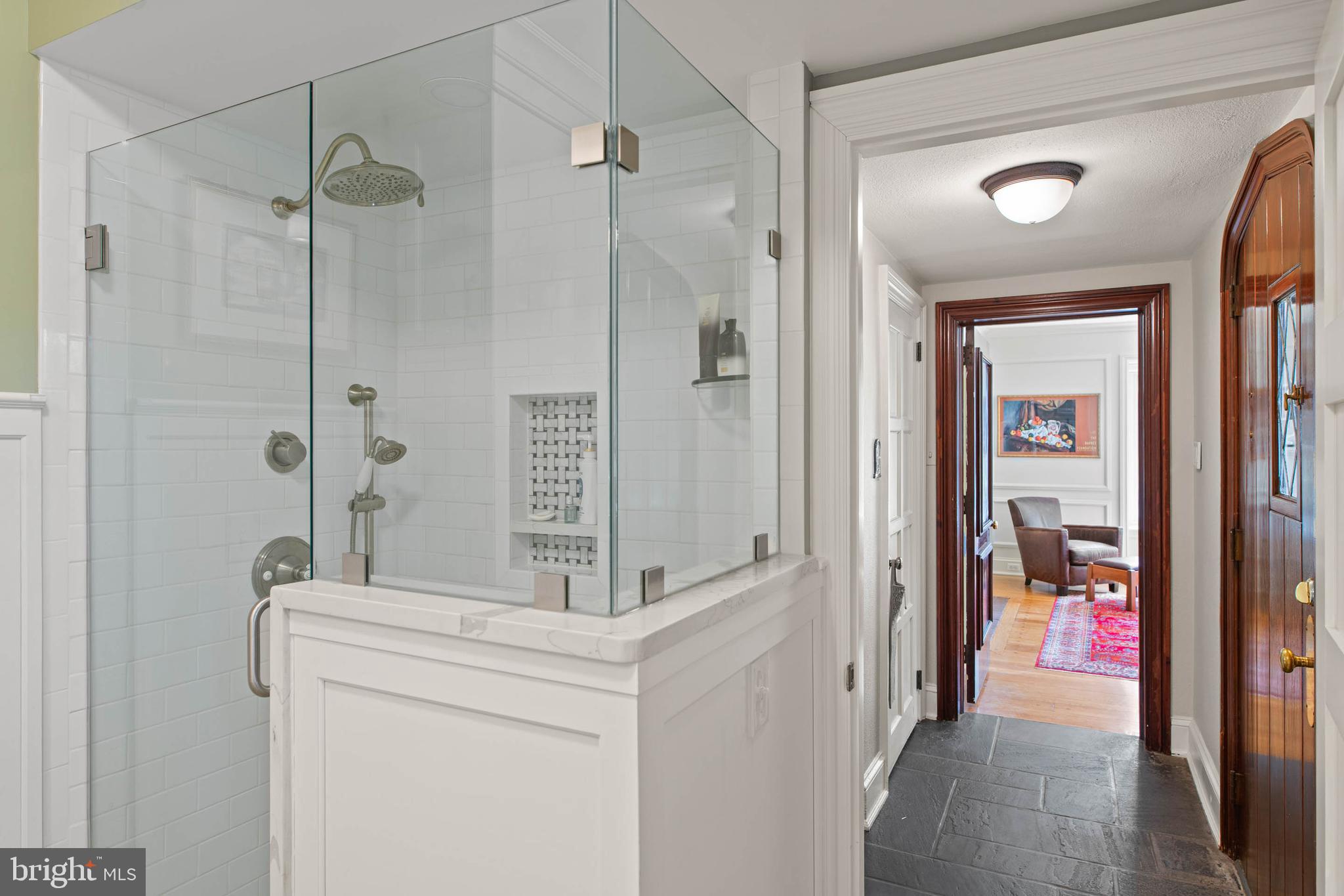 Open house Sunday April 19 Cancelled! Set on 1.76 acres, this stone Colonial is defined by its elevated setting, architectural proportions, and a level of craftsmanship rarely reproduced today. A courtyard approach introduces the home and reinforces its architectural presence. The exterior reflects the character of the Main Line's most established homes, with stone construction, detailed trim work, and arched openings.