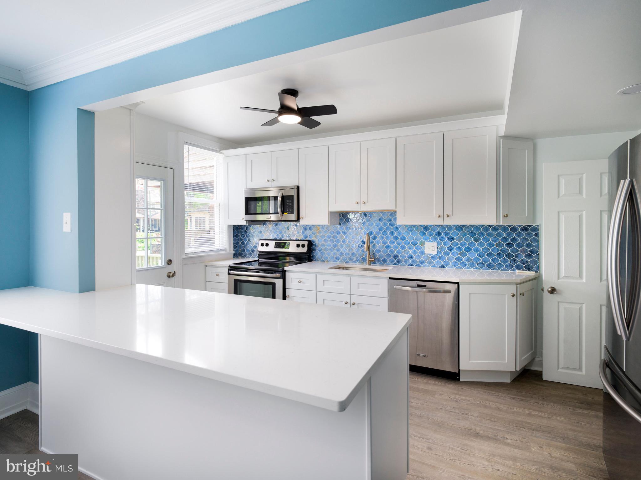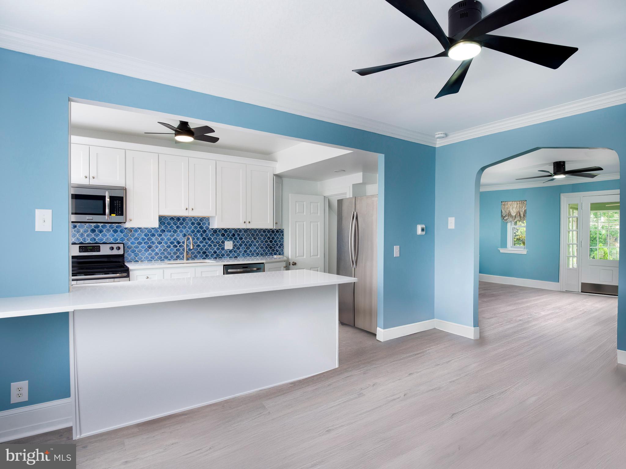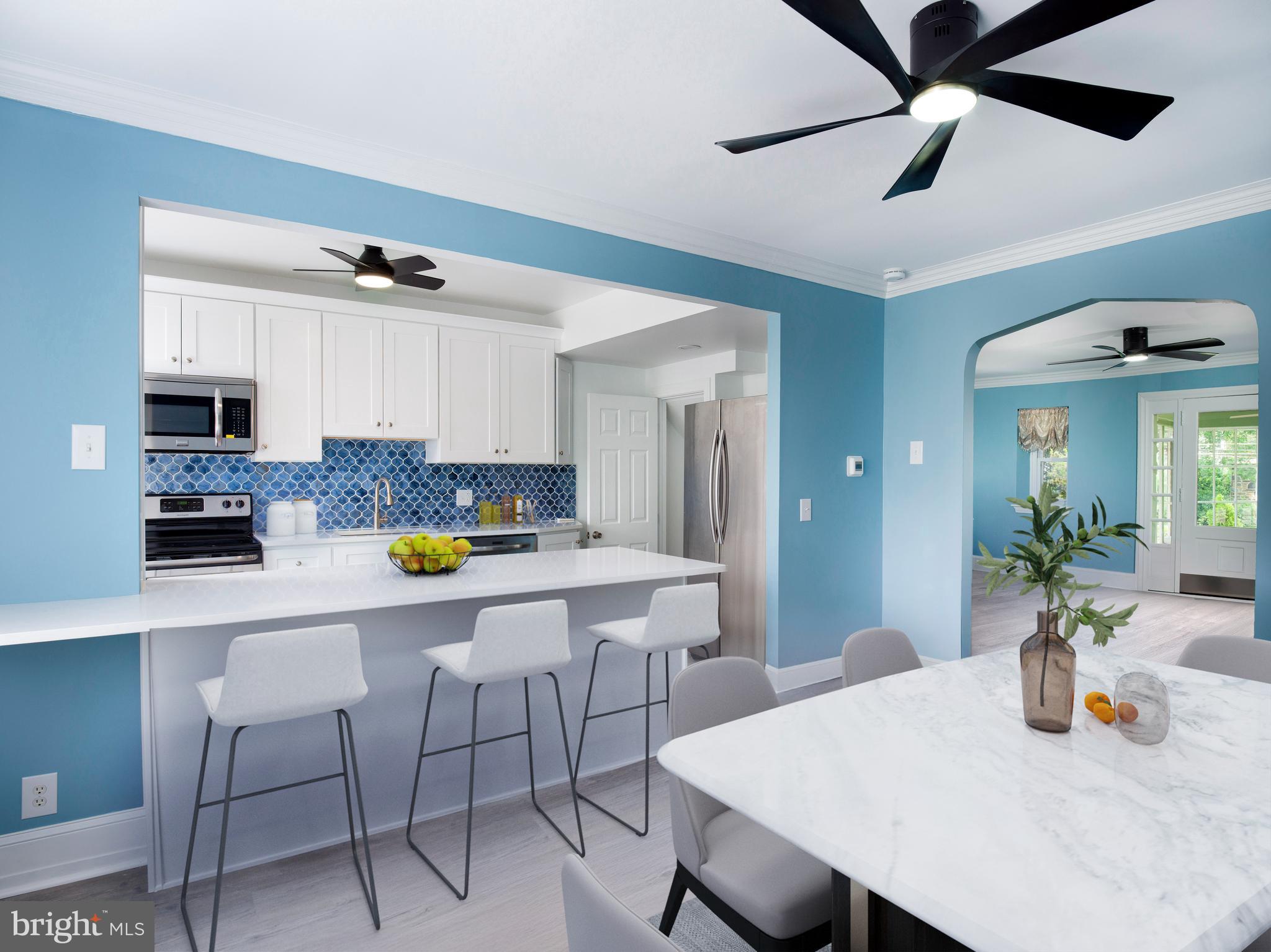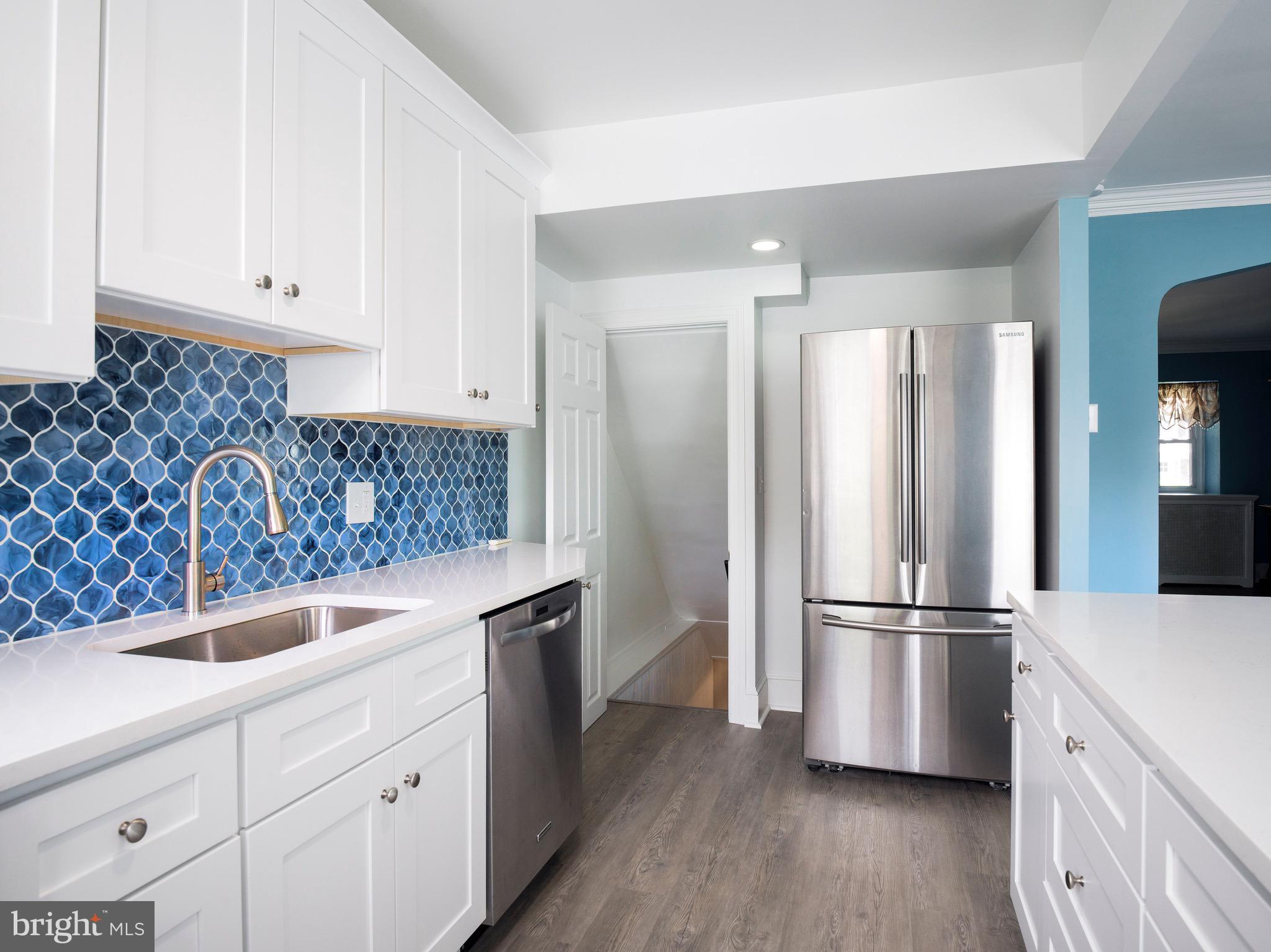 Tucked along one of Bala Cynwyd's most picturesque tree-lined streets, welcome to this beautifully updated Storybook Stone Tudor. Timeless on the outside and thoughtfully updated inside, this home blends classic Main Line character with modern comfort. Begin your tour on the enclosed front porch, bathed in sunlight and finished with slate flooring--a peaceful spot to relax. Inside, new luxury vinyl flooring flows throughout both levels, creating a warm, cohesive feel. The living room centers around a wood-burning fireplace, while the adjoining dining room leads to a beautifully updated kitchen that checks all the boxes - clean lines, great flow, and room to hang out. Complete with quartz countertops, a spacious island with seating, stainless steel appliances, and a crisp, modern tile backsplash. Step directly from the kitchen onto a new deck, ideal for enjoying your morning coffee or dining al fresco with family and friends. Upstairs, you'll find three bright and comfortable bedrooms and a beautifully updated full bath. The walk-out lower level offers a newly added full bathroom, laundry area, and bonus unfinished space for future use--perfect for a gym, office, or storage. An attached one-car garage with interior access adds everyday ease.