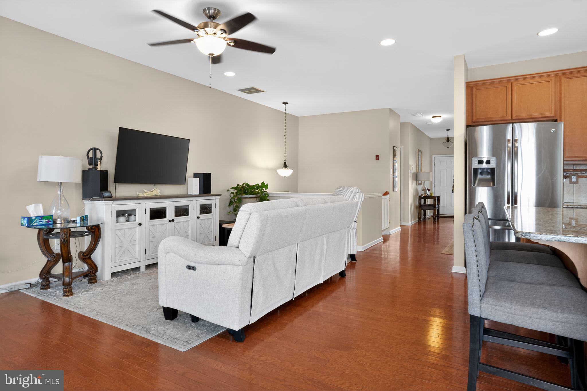 Step inside to discover a bright, open floor plan highlighted by 9-foot ceilings and gleaming hardwood floors throughout the main-level living and entertaining spaces. Just off the foyer, you'll find a sun-filled bedroom with a full-size closet and attached bath featuring a tub/shower combination and upgraded cabinetry--ideal as a guest suite or private home office.