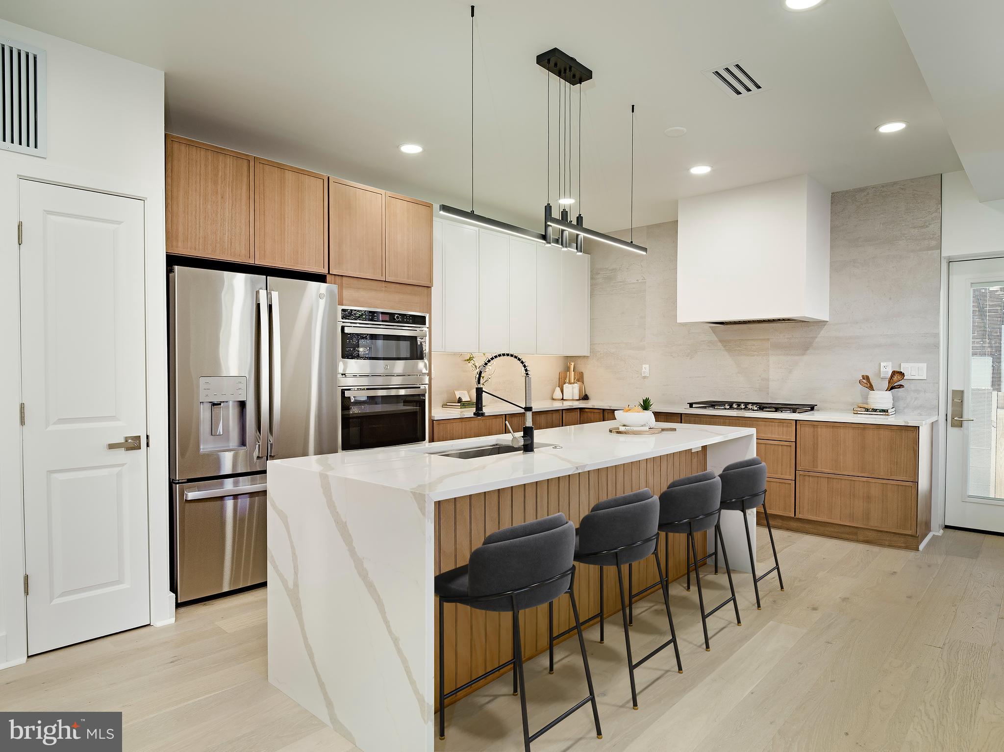 At the center of it all lies a kitchen that inspires. Quartz countertops, a waterfall island with seating for four, porcelain tile backsplash to the ceiling, a broom/pantry closet, and stainless steel appliances make it a place to gather, create, and savor life's everyday moments. The design balances modern luxury with timeless simplicity -- elegance that feels effortless.