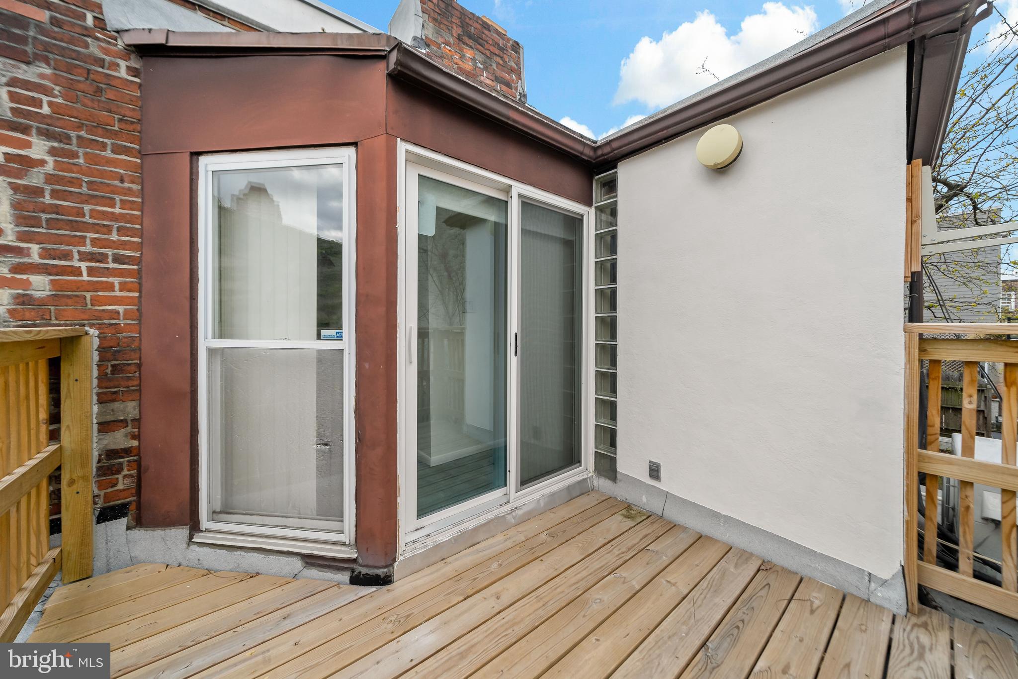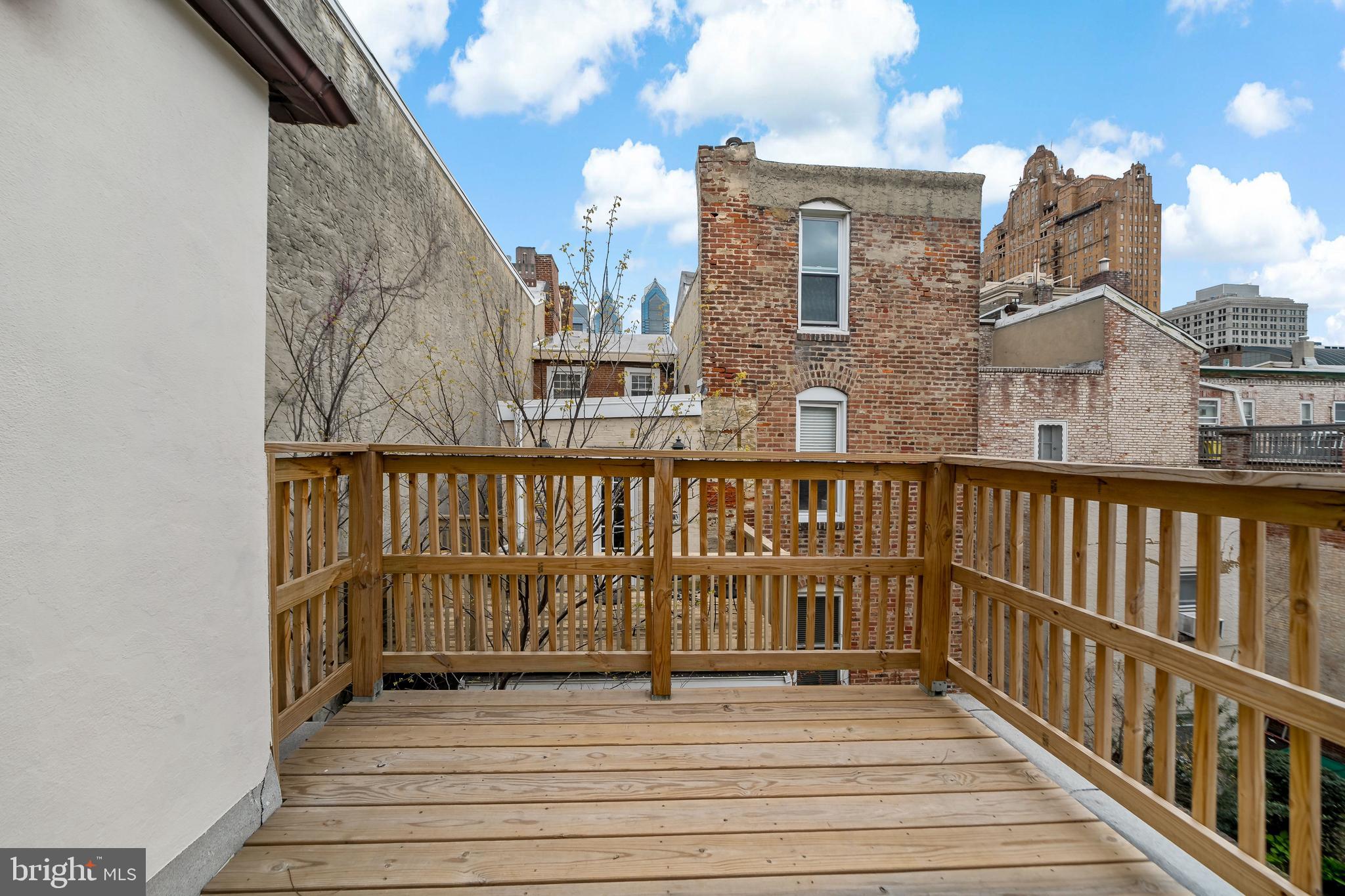 The third floor is home to the primary bedroom with an en-suite bath, ample storage, including a smartly designed walk-in closet, and sliders leading to a renovated deck with beautiful views of the Philadelphia skyline and rooftops--creating a perfect spot to unwind.