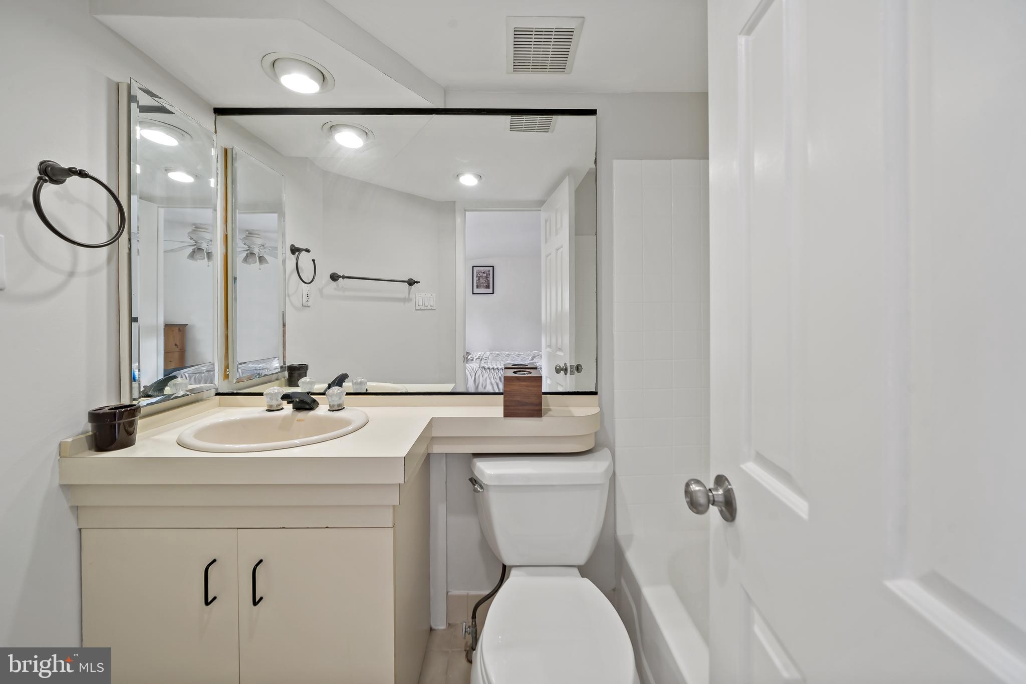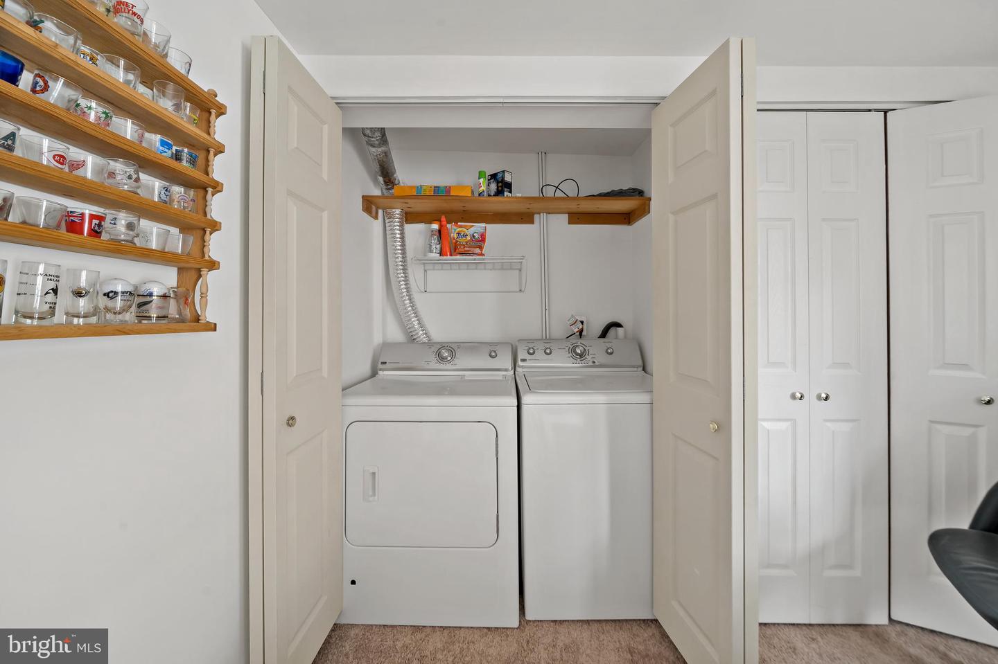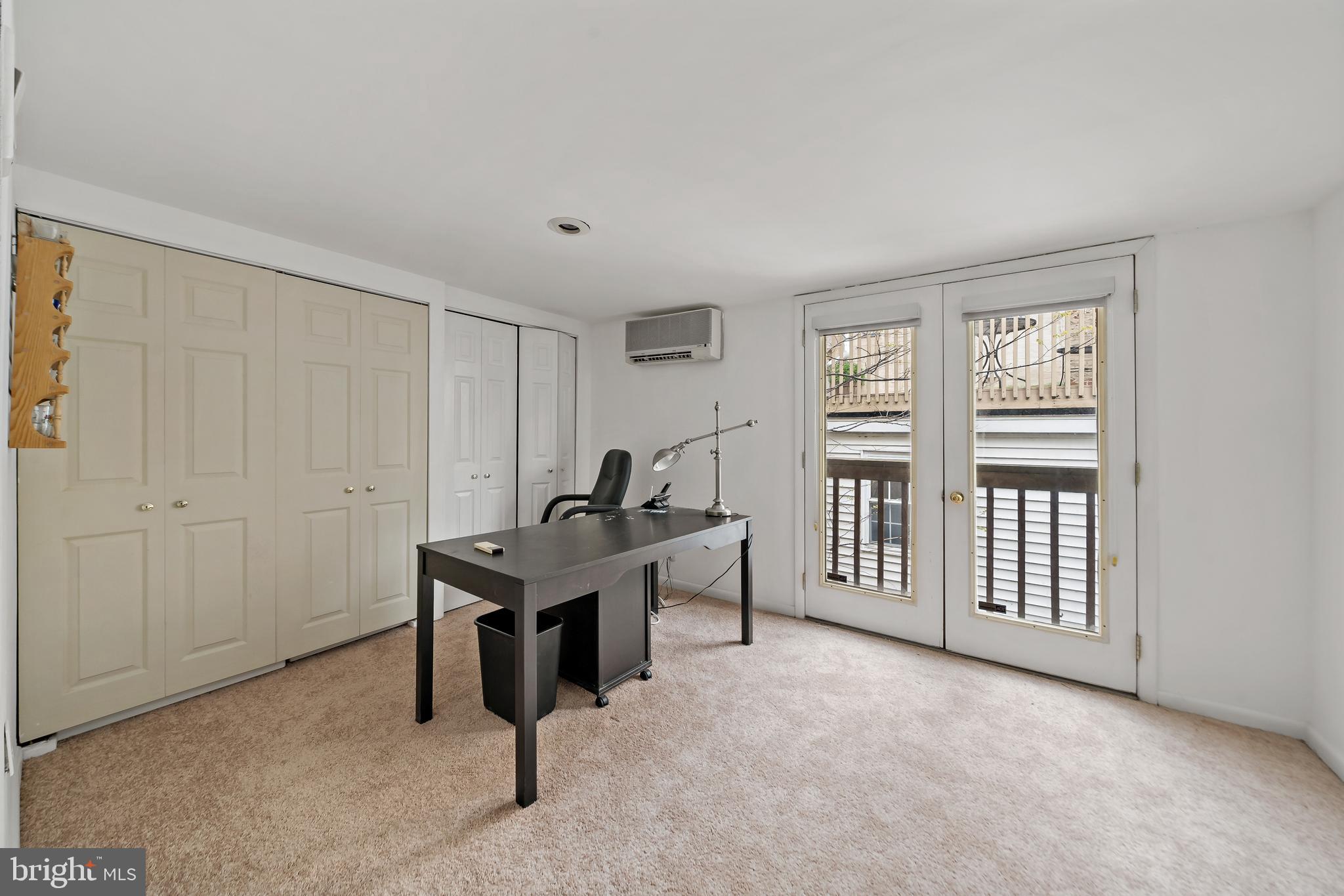 Take the stairs to the second floor, where you'll find the first of the two bedrooms (currently being used as a second living room and office), a full bath and conveniently located washer and dryer. This floor is spacious and light-filled, offering flexibility with the bedroom and den layout.
