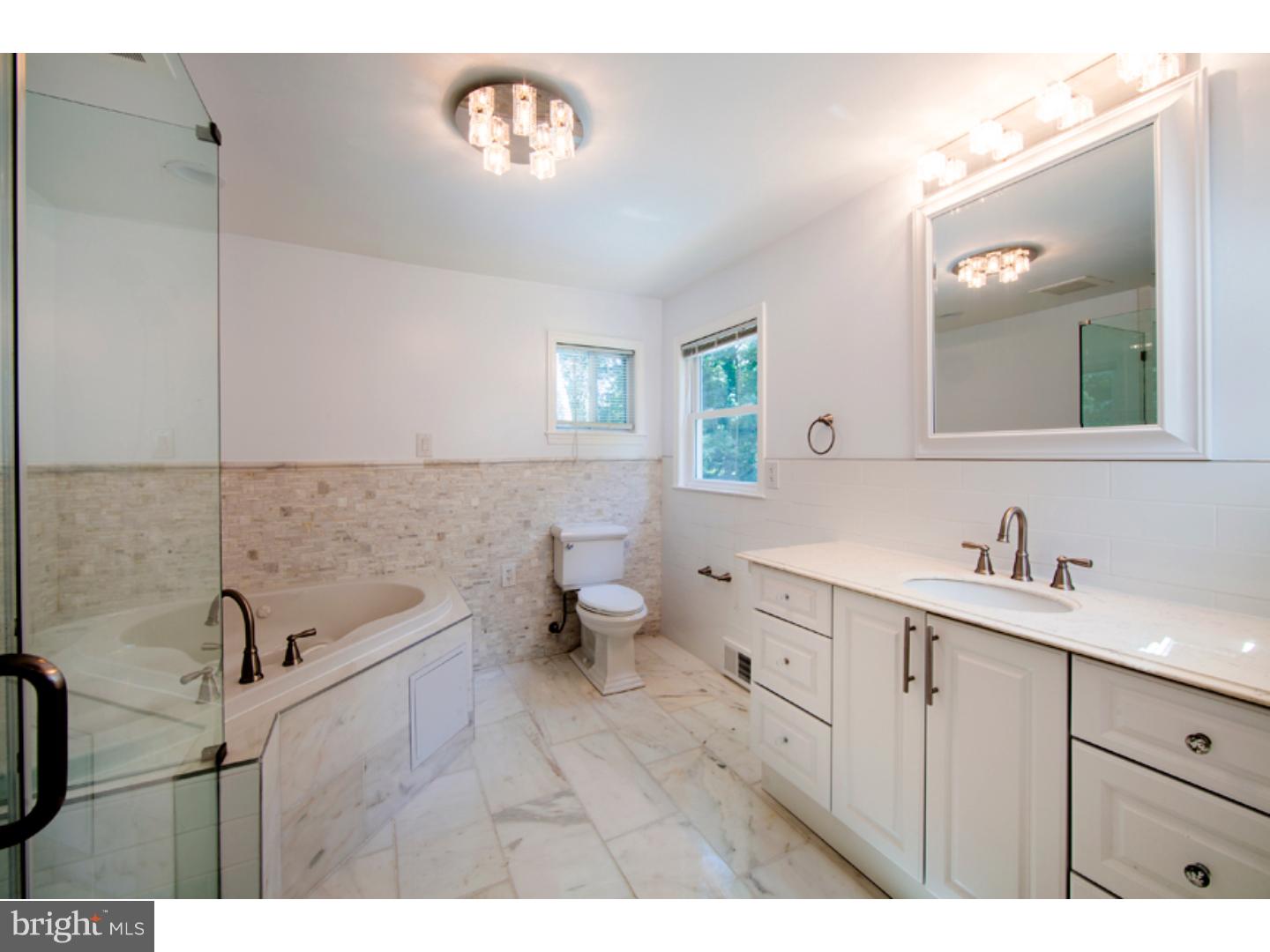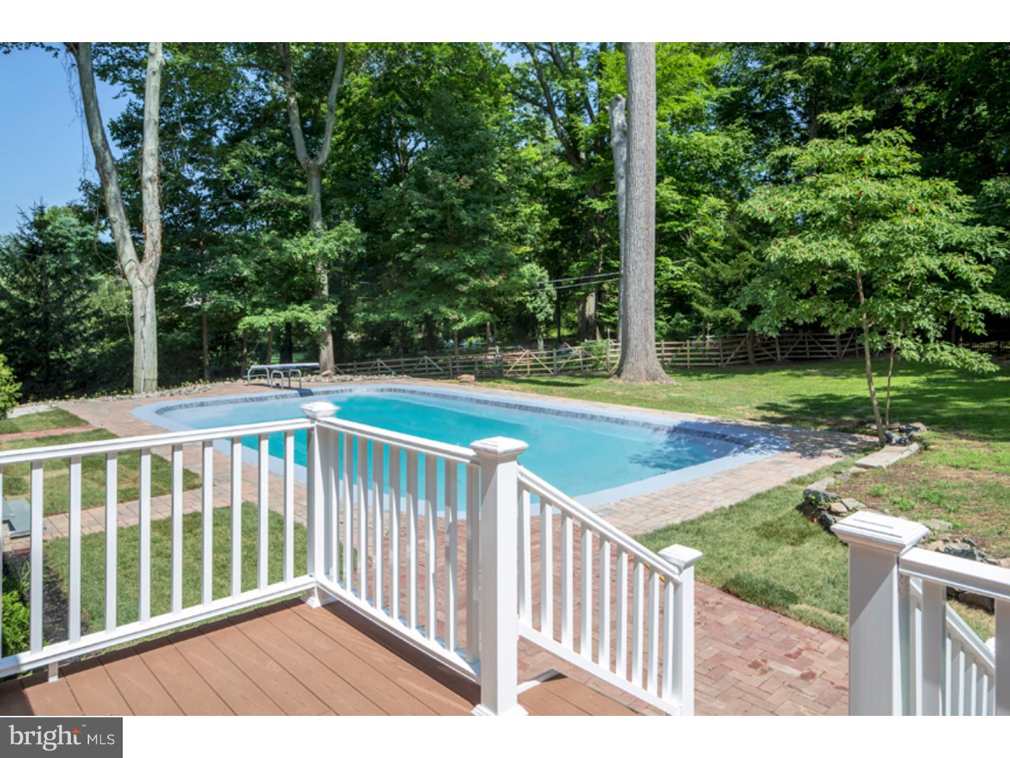 Estate-like stone pillars welcome you at the entryway of 1833 Montgomery, an extensively-renovated 4/5 BR 4 bath Cape-style home set far back from the road, on a lovely private acre screened by fencing and mature trees. At the end of the long driveway you are greeted by a circular drive fronting an elegant 4,192 SF home with stone detailing and several convenient entrances. The main entry leads into a tastefully-appointed foyer with rich hardwood and white painted brick accents. This opens to a fabulous, functional gourmet kitchen styled with tiled floors, granite counters, a glass tile backsplash, Homecrest soft-close cabinetry, peninsula island seating and new high-end stainless appliances. A pass-through window assures seamless serving to the family/dining room where guests and loved ones can gather. A triple window, hardwood floors and decorative crown/chair rail moldings enhance the comfortable ambiance. Perfect for quick bites and casual meals is a breakfast room adjacent to the kitchen with built-in seating/storage, plus glass slider doors to the low-maintenance rear deck. The living room accommodates formal hosting, with oversized windows, a raised hearth and stone gas fireplace flanked by built-in cabinetry, and doors out to the deck. Completing the first floor is a large bedroom, hallway bath, and triple-exposure recreation room with a kitchenette. Off the rec room is a contemporary staircase that rises to a loft/bonus room (or 5th bedroom) with full bath. The main staircase ascends to the quiet second level presenting 3 rear-facing bedrooms, a hall bathroom and generosity of closets. The master bedroom stands apart with its private walk-in closet and stunning white marble and tile en-suite bath. Indulge in relaxing moments in the Whirlpool tub and frameless glass-enclosed shower with pebble floor. The lower level with French drains offers plenty of room for storage and other uses. The laundry room is equipped with a new washer, dryer and sink, and the larger of 2 extra rooms opens out to the side brick terrace. A detached garage provides shelter for 2 cars and excellent storage on the 2nd floor. Lounge in tranquility out back on the paver patio and enjoy the warm weather swimming in the beautiful rehabbed pool with a new heater and filter. Great schools, plenty of stores and local restaurants comprise this family-friendly Villanova neighborhood.