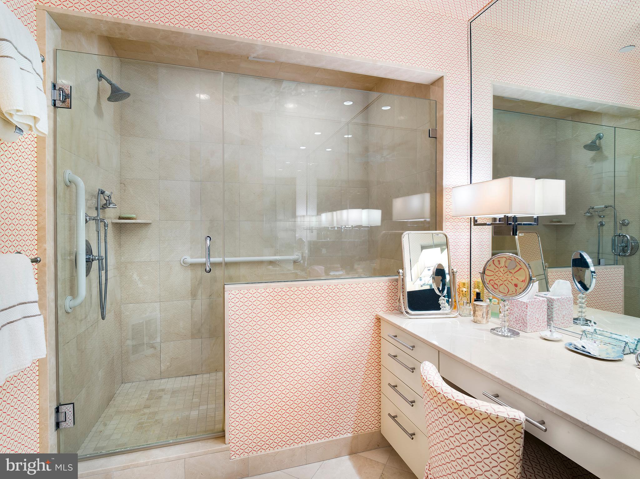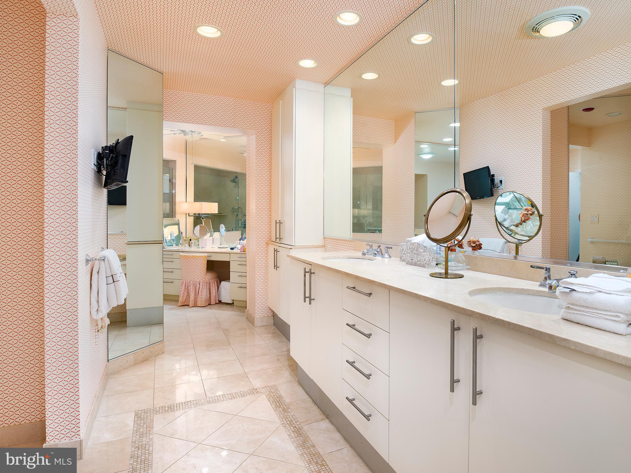 Welcome to an exquisite Penthouse unit at The Corinthian, conveniently situated in the heart of Bala Cynwyd. Step into the grand foyer, where elegance and meticulous attention to detail abound. The foyer features a convenient powder room for guests. On the left side, a spacious bedroom suite awaits, offering multiple walk-in closets and a full bath. You'll also find a cedar closet, providing ample storage space. Across from the foyer, discover the impressive primary suite, boasting a large ensuite bathroom with double sinks, a walk-in shower, and a generous walk-in closet.