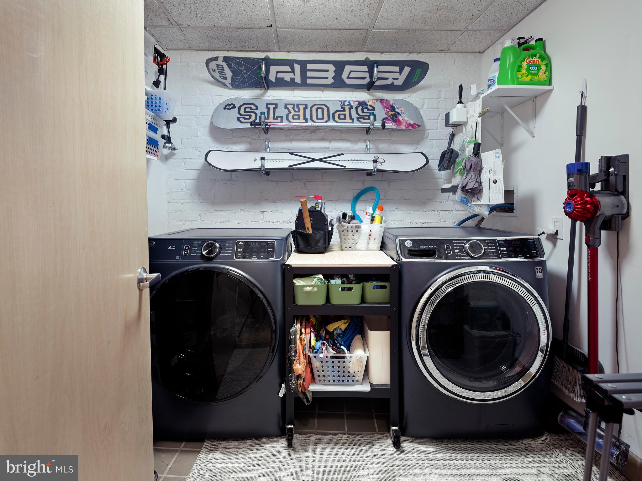 Upon entering, you're greeted by a spacious laundry/utility room--complete with a newer washer and dryer (purchased within the last 3 years)--on your left, and a generously sized second bedroom with its own en-suite bathroom on your right. Continue down the long, welcoming hallway and you'll pass a large powder room before reaching the primary bedroom that features a walk in closet and en suite bathroom and the open main living area.