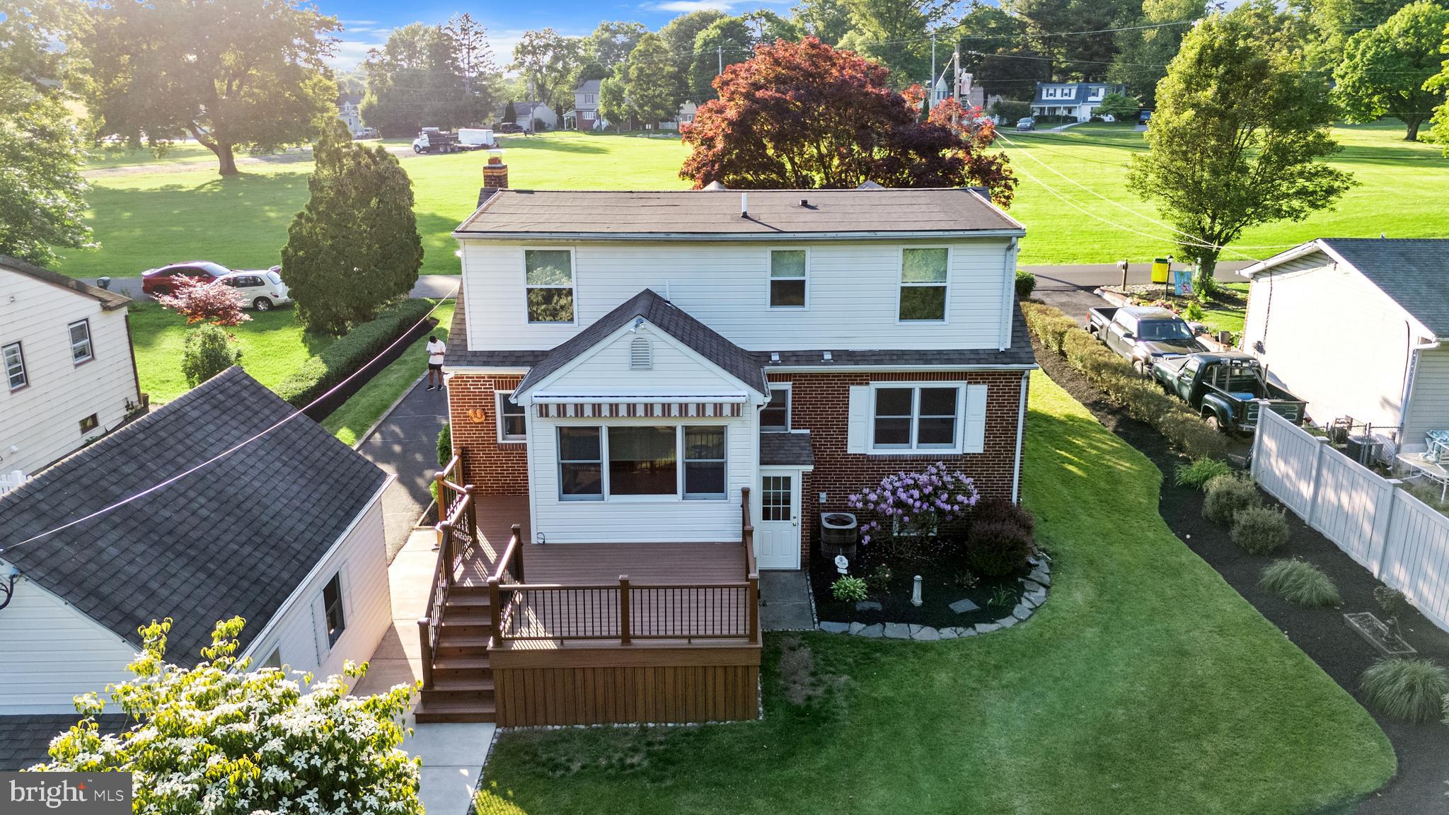 OFFER DEADLINE SUNDAY 6/2 BY 8:00PM! Welcome to 233 Columbia Ave - a charming and impeccably maintained home nestled on a serene .39-acre lot, adjoining open space both out front and back. From the moment you arrive, the beautiful brick exterior and meticulous landscaping capture your attention. This property has been lovingly cared for inside and out with everything in working order, featuring numerous upgrades (list attached to MLS!), making it truly move-in ready. As you step onto the peaceful front porch and enter inside, you're greeted by oak hardwood floors and fresh paint that flows throughout the entire home. The spacious and bright living room features a cozy wood fireplace with a Vermont Casting stove, perfect for gatherings or quiet evenings. To the left, you'll find two comfortable bedrooms, or one that could be used as an office or den and an updated full bathroom with an oversized walk-in shower, which is perfect for those who wish to avoid stairs! The expansive kitchen boasts an island and a separate dining area that overlooks the picturesque backyard. From the kitchen, step out onto the beautiful Trex deck and relax under the retractable electric awning while enjoying the tranquility of your outdoor space. The backyard also includes a new, conveniently located Amish style shed and an oversized garage. The garage is large enough to accommodate two cars and includes a loft with pull down stairs to provide generous amounts of storage space. Upstairs, the added second floor features two large bedrooms, a full bathroom with tub, and oversized windows which provide plenty of natural light, all with beautiful oak hardwood floors. The versatile basement offers a finished flex room that can serve as an additional bedroom, office, music room, gym, or whatever suits your needs. It also includes a workshop room, a nicely sized half bathroom, laundry area with washer and dryer, a double ceramic laundry tub and ample storage space with lots of shelving. The basement floor is fully tiled and there is a full basement waterproofing system, with two independent sump pumps for peace of mind. Don't miss the opportunity to make this wonderful property your new home, which is close to the Blue Ribbon Schools and a variety of restaurants and shopping. This home offers both comfort and convenience. Come see for yourself - 233 Columbia Ave is welcoming you home.