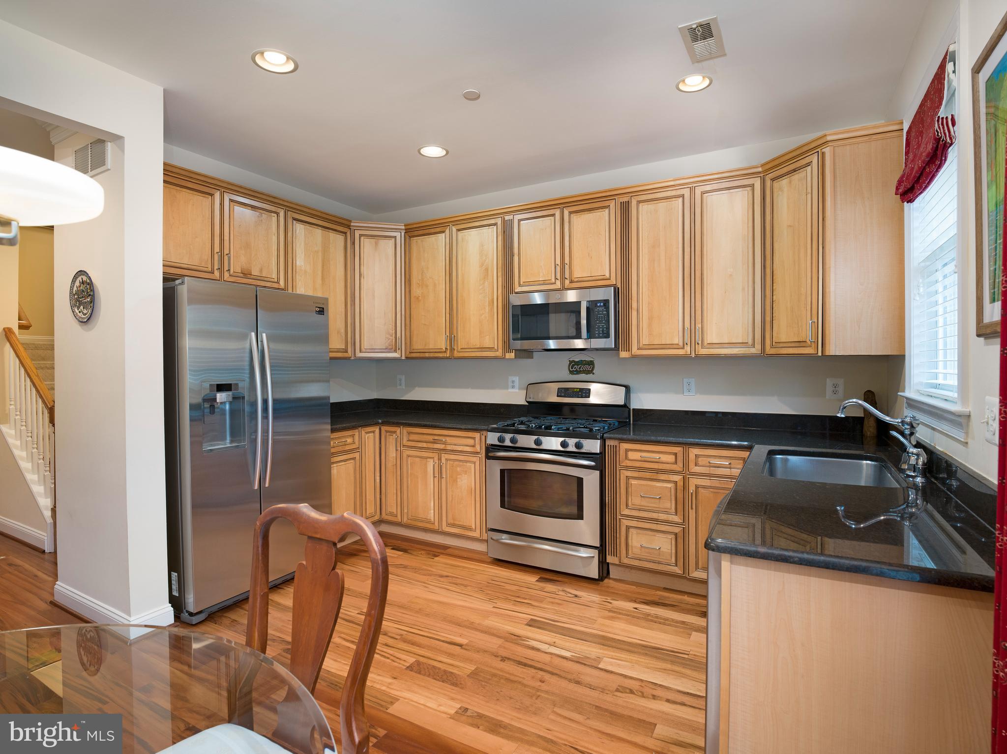 Upstairs, the open main living area features hardwood floors and sunlight streaming through. The spacious living and dining rooms include a bay window overlooking mature trees. The large eat-in kitchen features elegant cabinetry, granite countertops, and stainless-steel appliances. Sliding doors open to a rear deck that feels like a private retreat -- ideal for morning coffee, birdwatching, or evening relaxation. A lovely and convenient powder room completes this level.