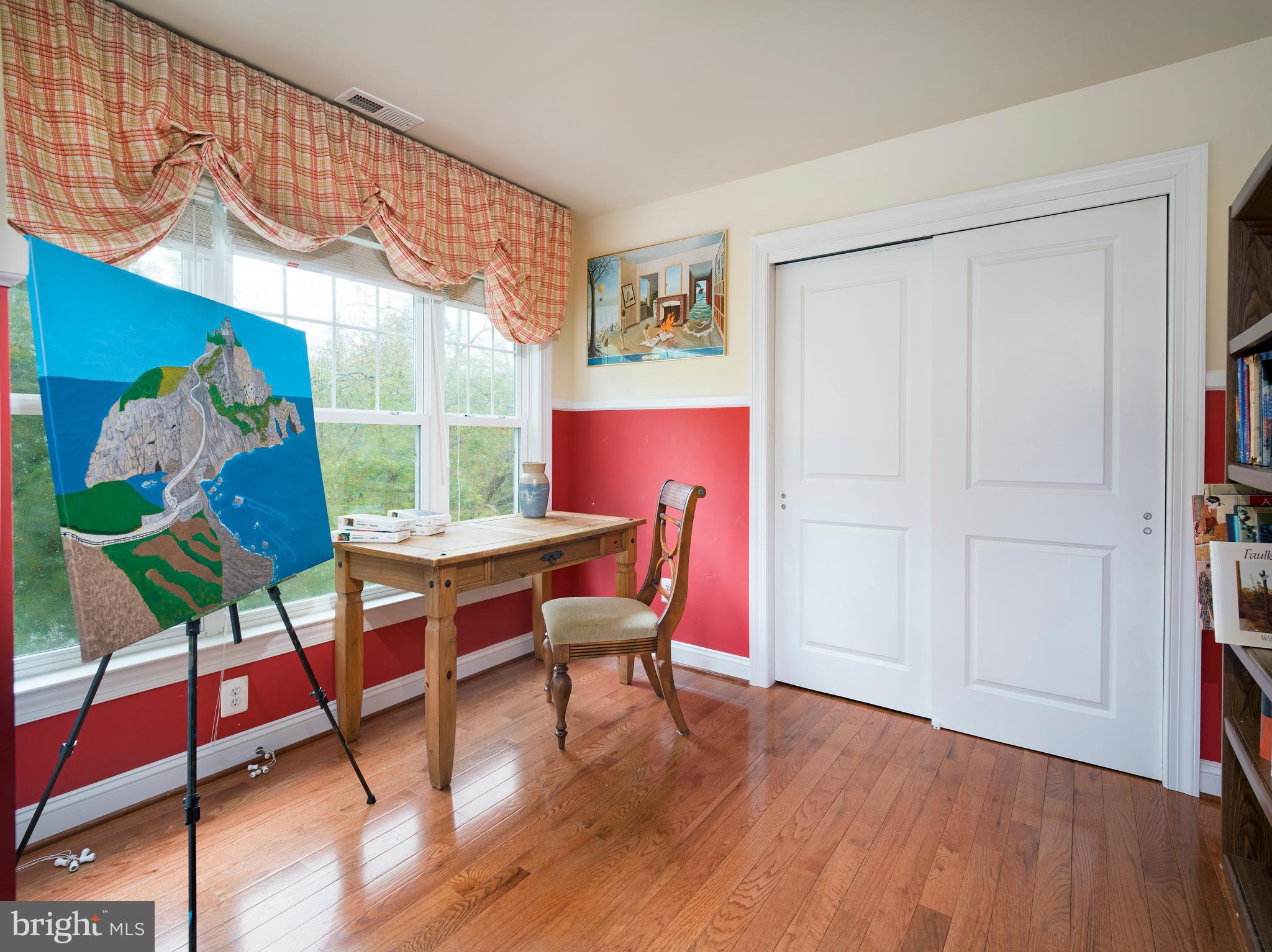 The top floor includes a generous primary suite with a large bay window showering the room with a vista of trees and natural light, an en-suite bath and walk-in closet with built-ins. There is a spacious second bedroom and full hall bath with tub. The top level offers a large, flexible space that can serve as a third bedroom, office, art studio, or combination, with a generous closet for storage.