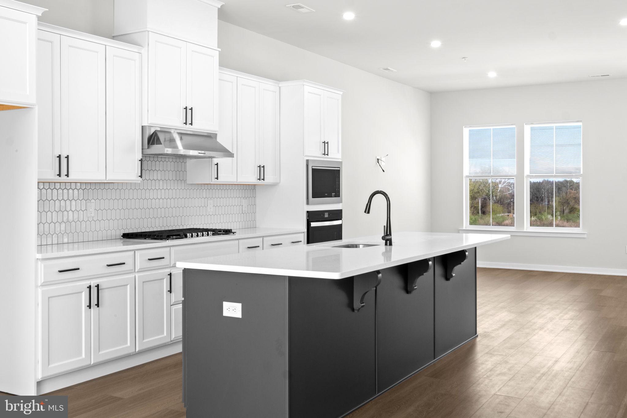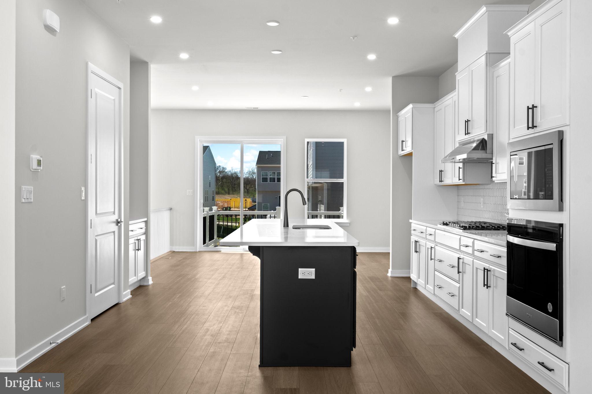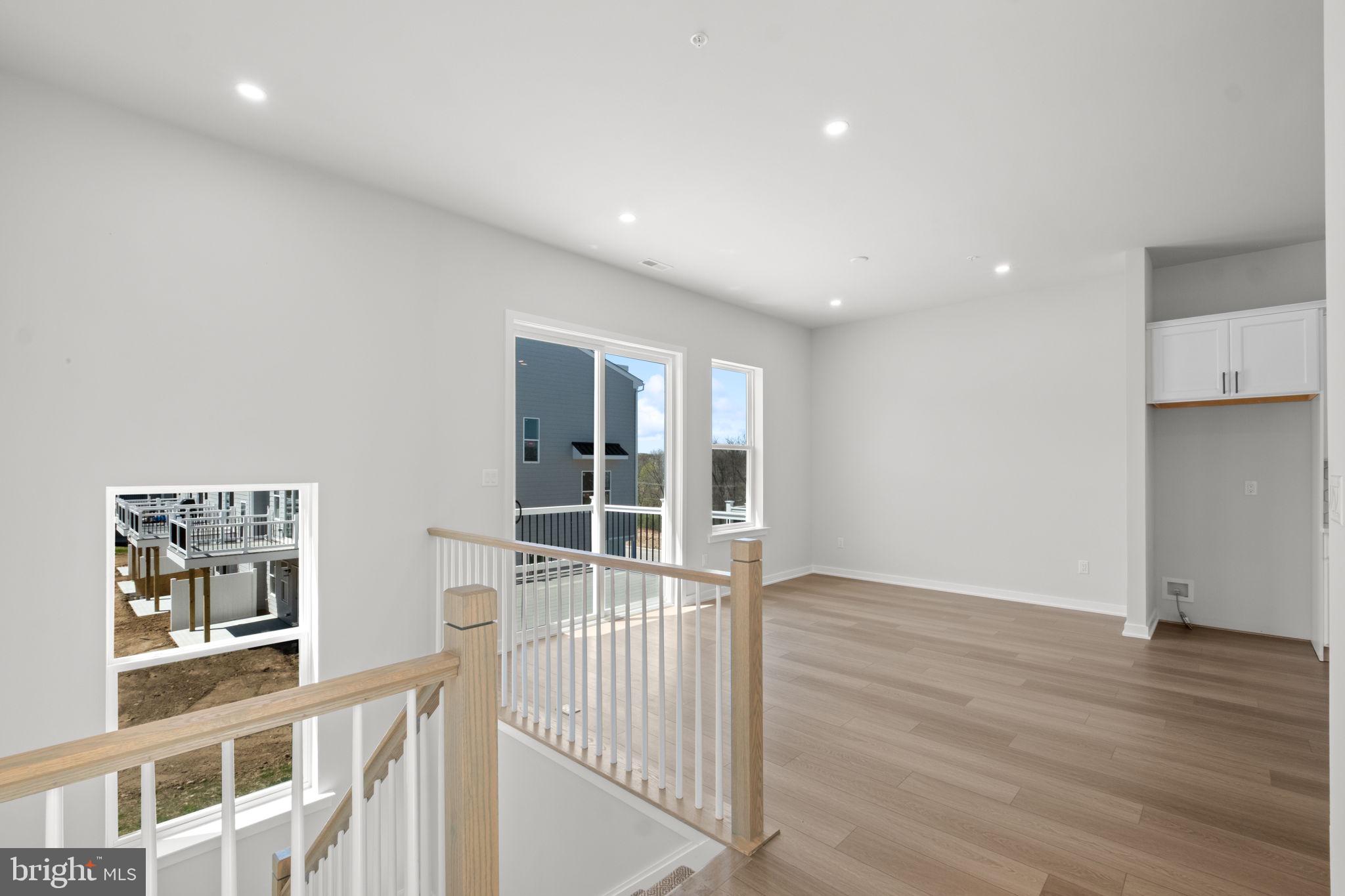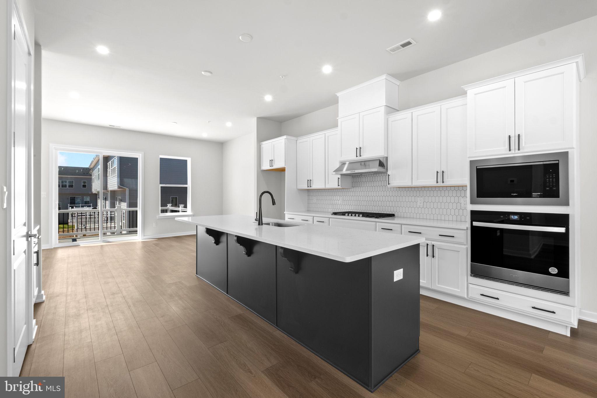 On the main living level, you'll be wowed by the open railings, soaring 10' ceilings, and a bright dining area that opens onto a generous deck. The chef's kitchen is the center of attention, featuring a grand 10' quartz-topped island, coffee bar, gas cooktop with hood above, built-in wall oven and microwave. The great room is adjacent to the kitchen and features oversized windows.