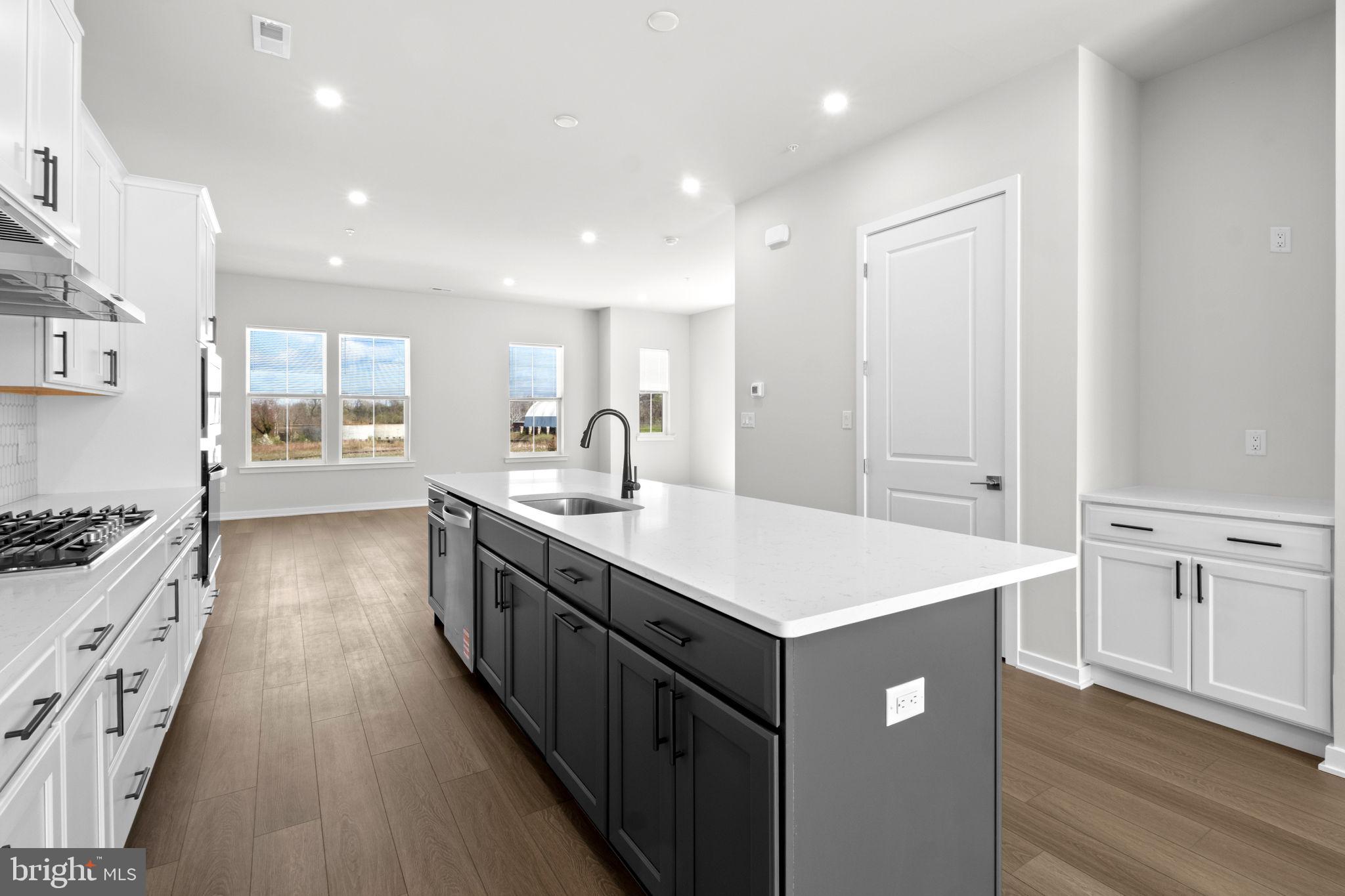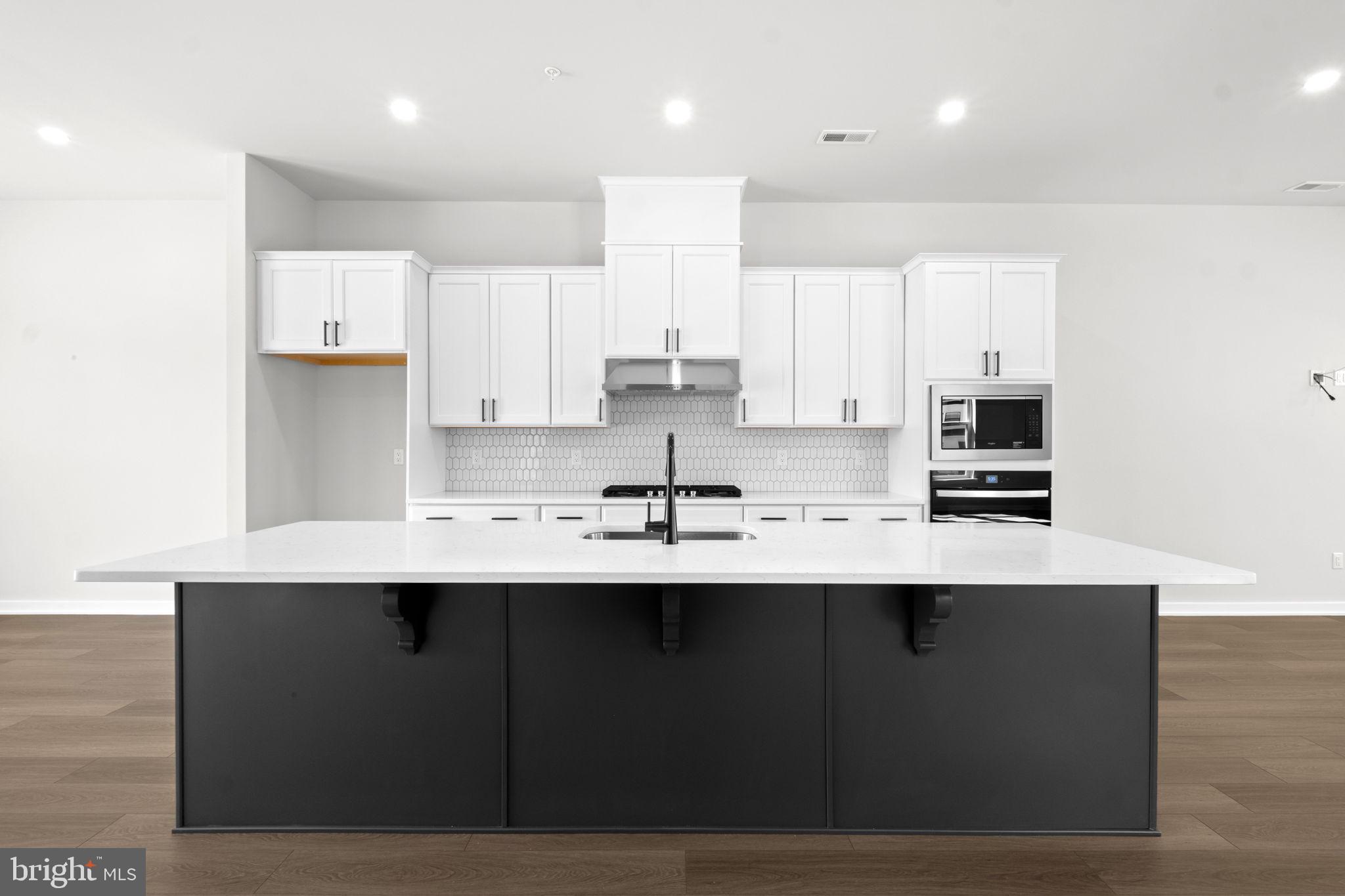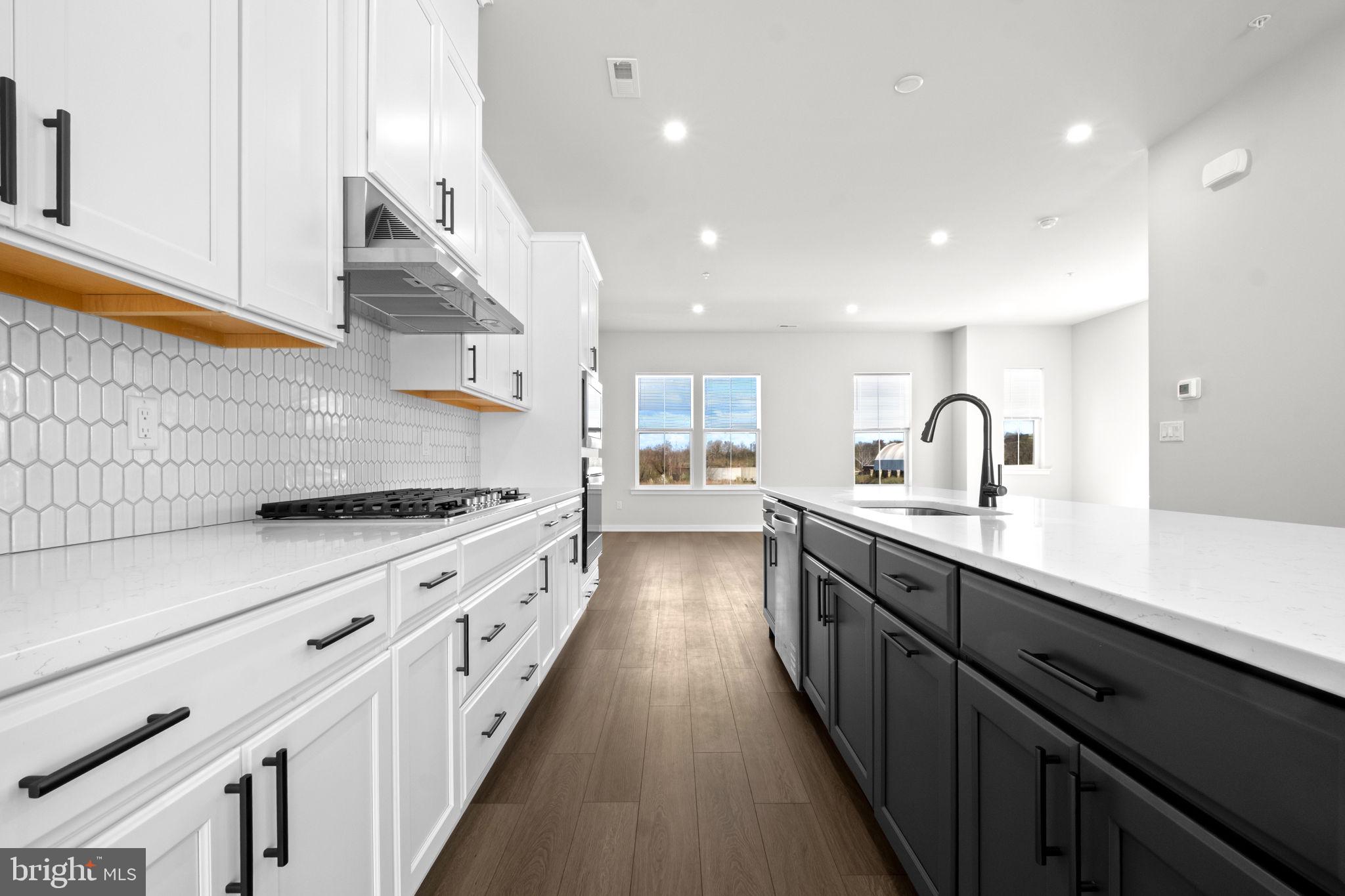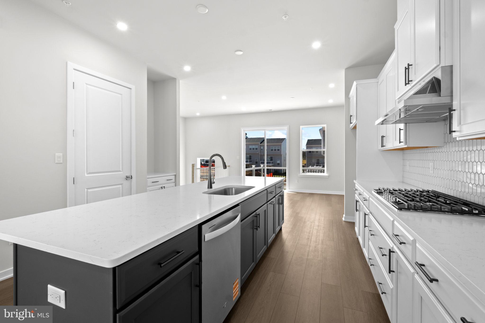 On the main living level, you'll be wowed by the open railings, soaring 10' ceilings, and a bright dining area that opens onto a generous deck. The chef's kitchen is the center of attention, featuring a grand 10' quartz-topped island, coffee bar, gas cooktop with hood above, built-in wall oven and microwave. The great room is adjacent to the kitchen and features oversized windows.