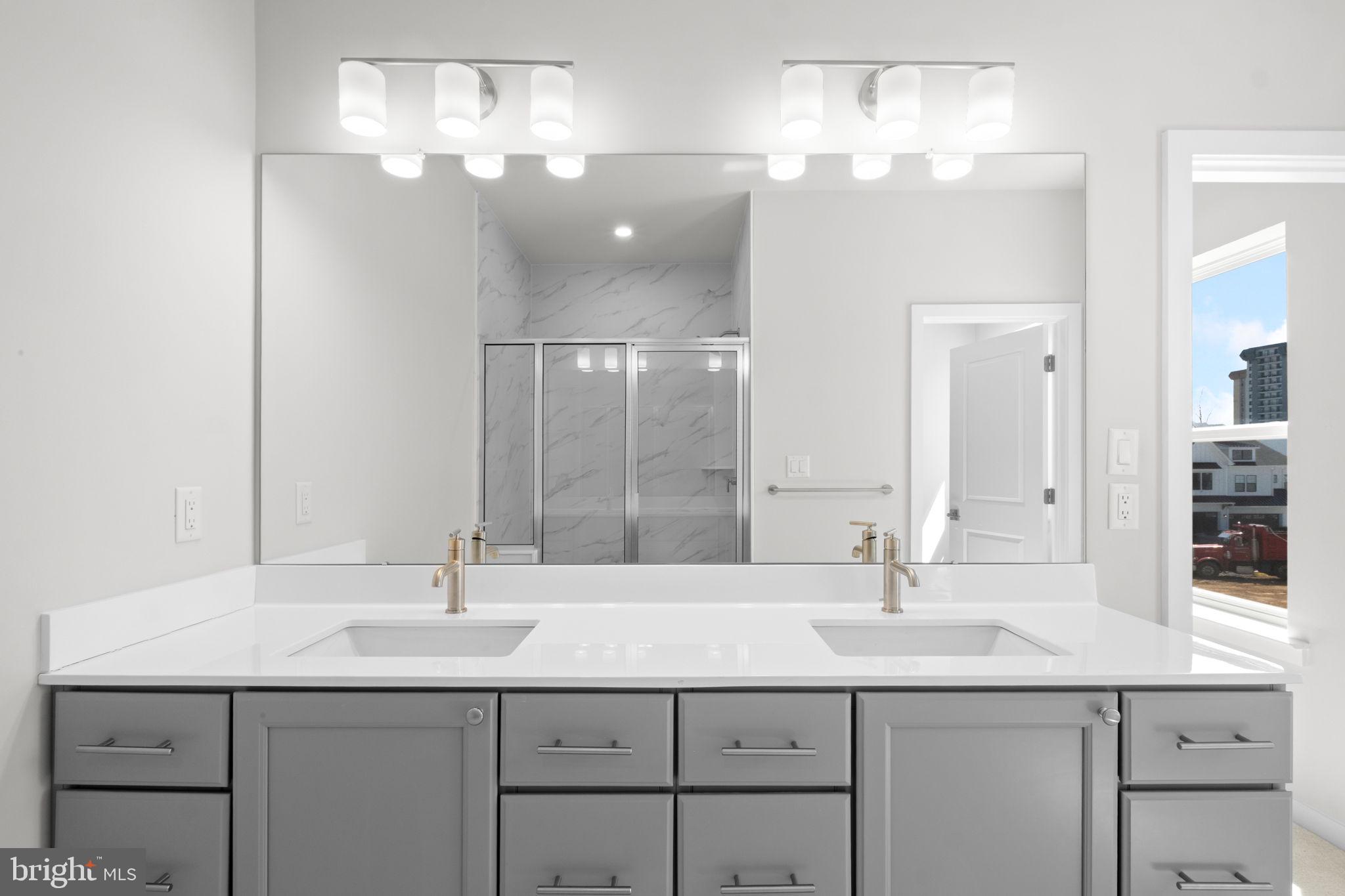 Upstairs, the primary suite is located towards the back of the home with two large walk-in closets, raised ceiling, and a spa-inspired full bathroom, boasting a walk-in shower with a built-in seat, dual-sink vanity, and private water closet. A laundry room, two additional bedrooms, and shared hall bathroom complete the sleeping level.