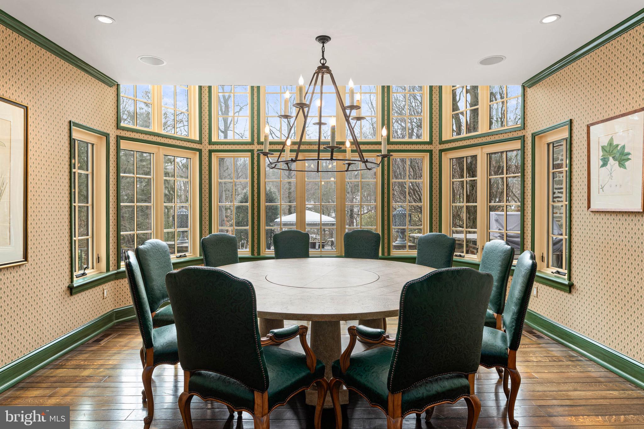 The main level is designed for both entertaining and daily use and includes formal living and dining rooms, a sunroom, billiards room, two family rooms, two private offices, and a gourmet kitchen with adjacent breakfast room at the center of the house.