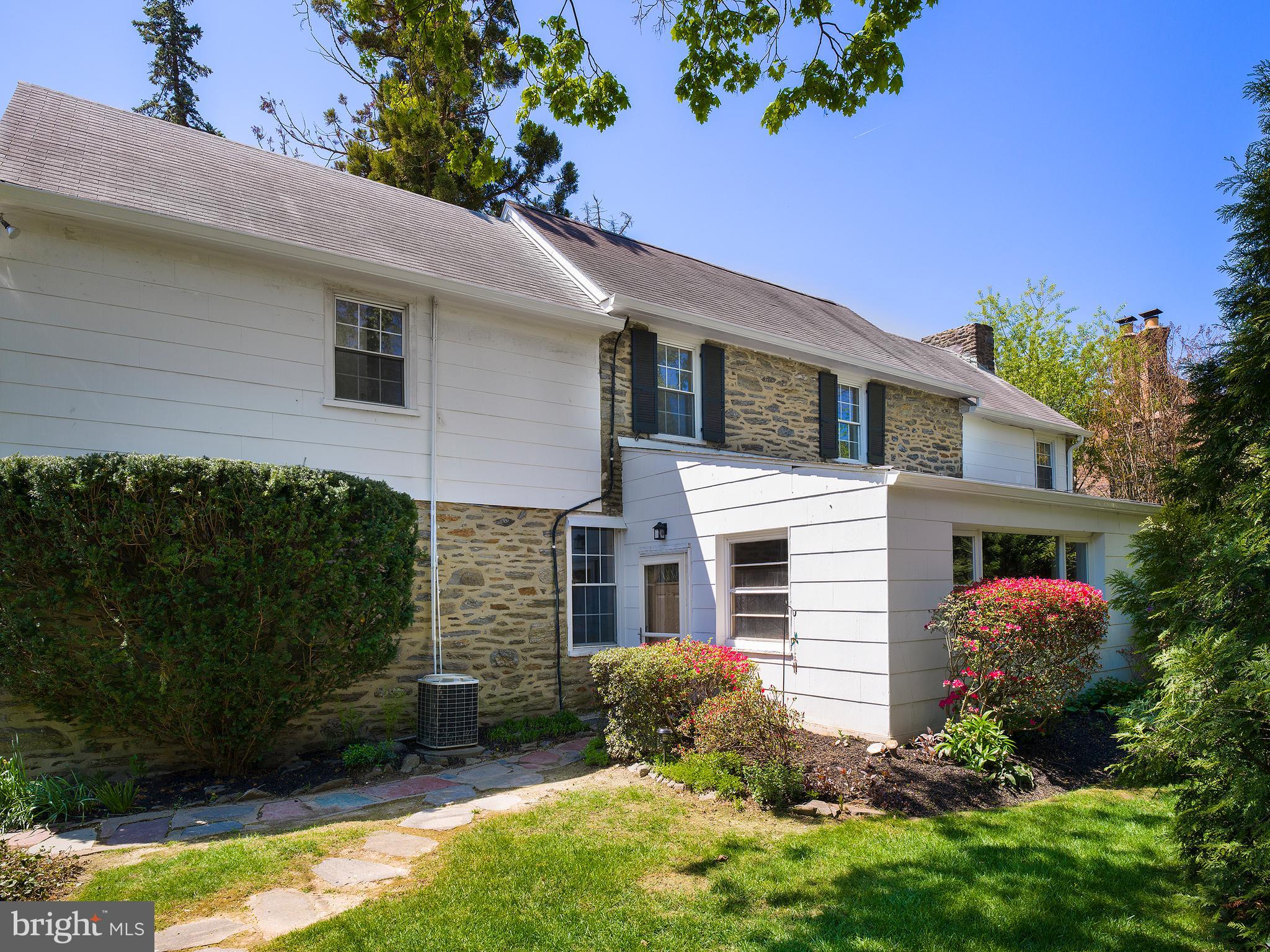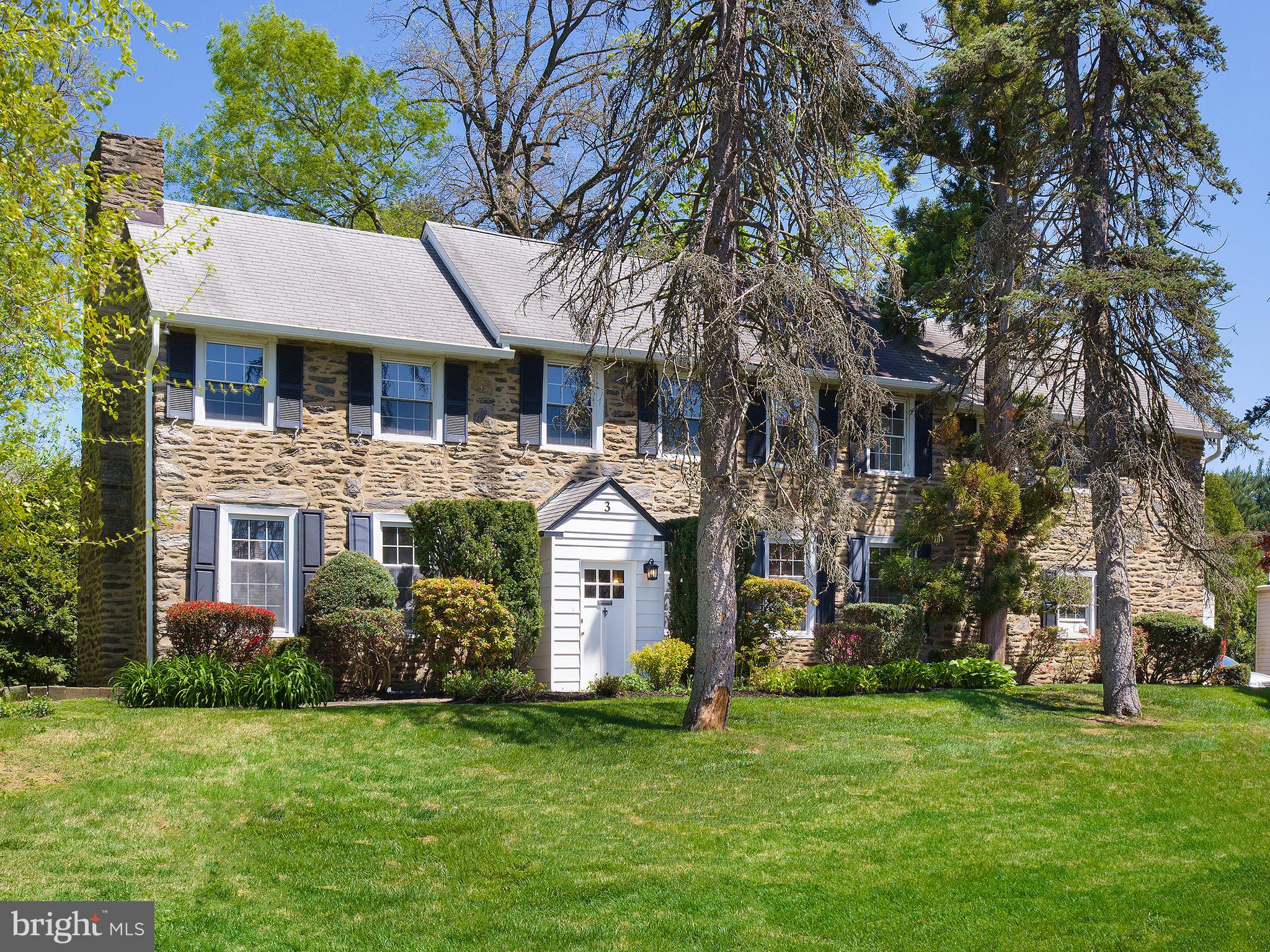 Nestled on 3 Wiltshire Road in Wynnewood, this captivating stone Colonial residence boasts timeless elegance and awaits your personal touch. With its magnificent curb appeal, this home beckons renovation to fulfill its potential. Step into an open foyer leading to a living room featuring a wood-burning fireplace, while the dining room sits to the right, accompanied by a convenient powder room. Beyond the living and dining areas lies an expansive family room with large windows overlooking the rear yard, connected to the kitchen adorned with granite countertops. An attached garage, complete with washer and dryer facilities, adds practicality to daily living. Ascend the main staircase to discover the primary bedroom with its own bathroom, accompanied by two additional bedrooms sharing a Jack and Jill bathroom. An additional bedroom with a full bath awaits, accessible via the rear staircase from the kitchen. The lower level is finished with a powder room and ample storage, including two cedar closets. A charming flagstone patio graces the rear, offering an ideal space for outdoor relaxation and entertainment. Situated on a prestigious street, this property enjoys easy access to dining, shopping, renowned schools, and major transportation arteries, enhancing its appeal and convenience. Please note, a recent home inspection has been completed, and the property will be sold in "as-is" condition.
