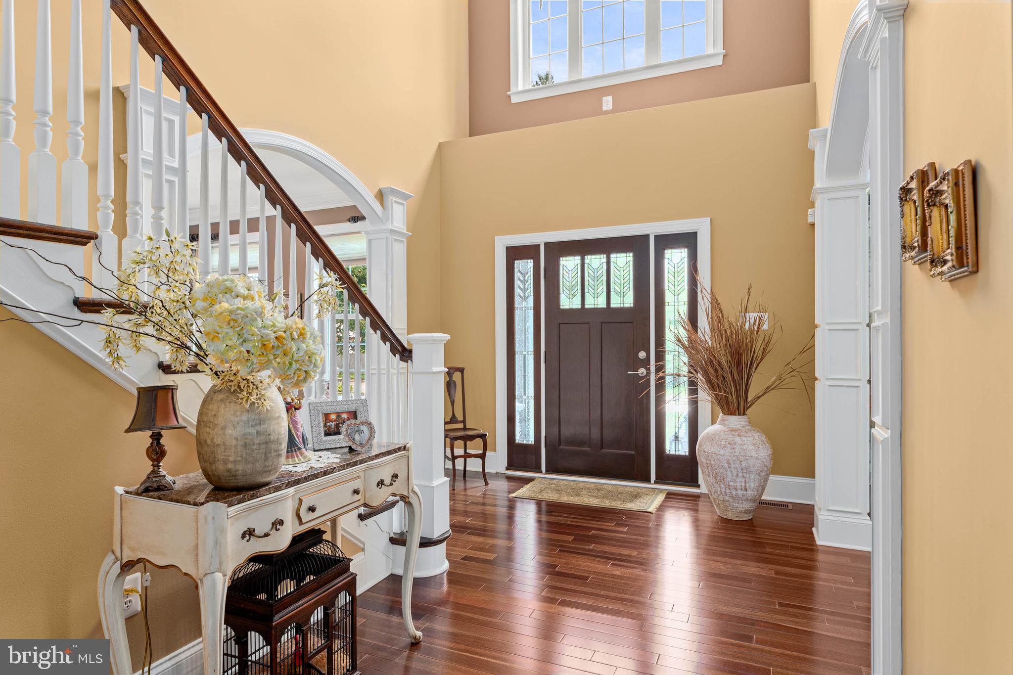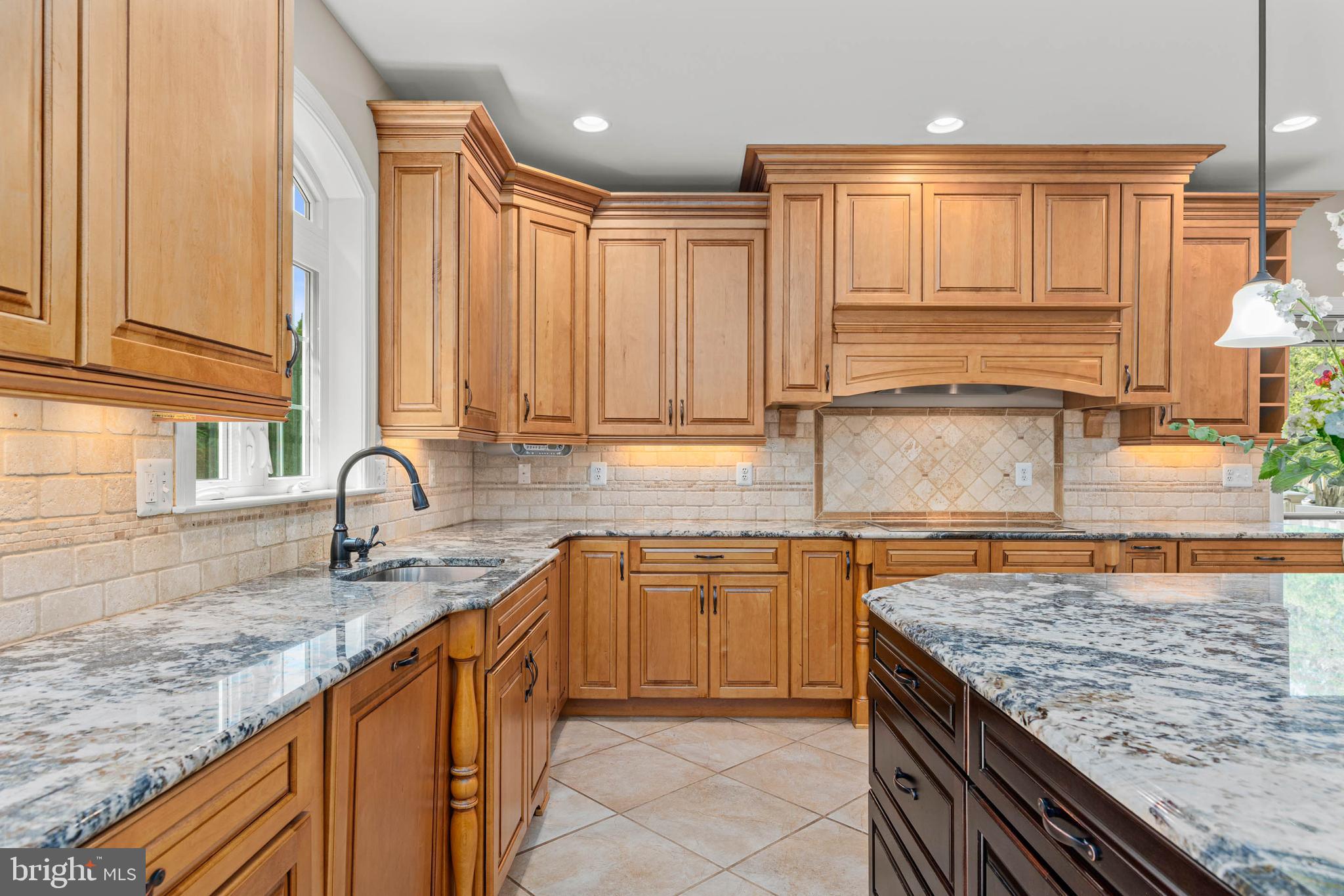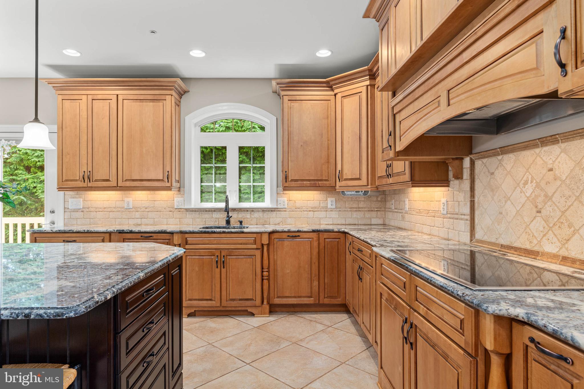A sun-filled two-story foyer with custom millwork and gleaming hardwood floors introduces the home's craftsmanship and inviting flow. Formal living and dining rooms flank the entry, offering elegant spaces for entertaining or quiet gatherings. The main level features 9-foot ceilings, enhancing the home's sense of volume and light. The expansive family room, anchored by a gas fireplace, connects seamlessly to the gourmet kitchen--complete with KraftMaid cabinetry, granite countertops, stainless steel appliances, and an electric cooktop. Just beyond, a bright sunroom opens to a peaceful flagstone patio along the side of the home--perfect for morning coffee or dining alfresco.
