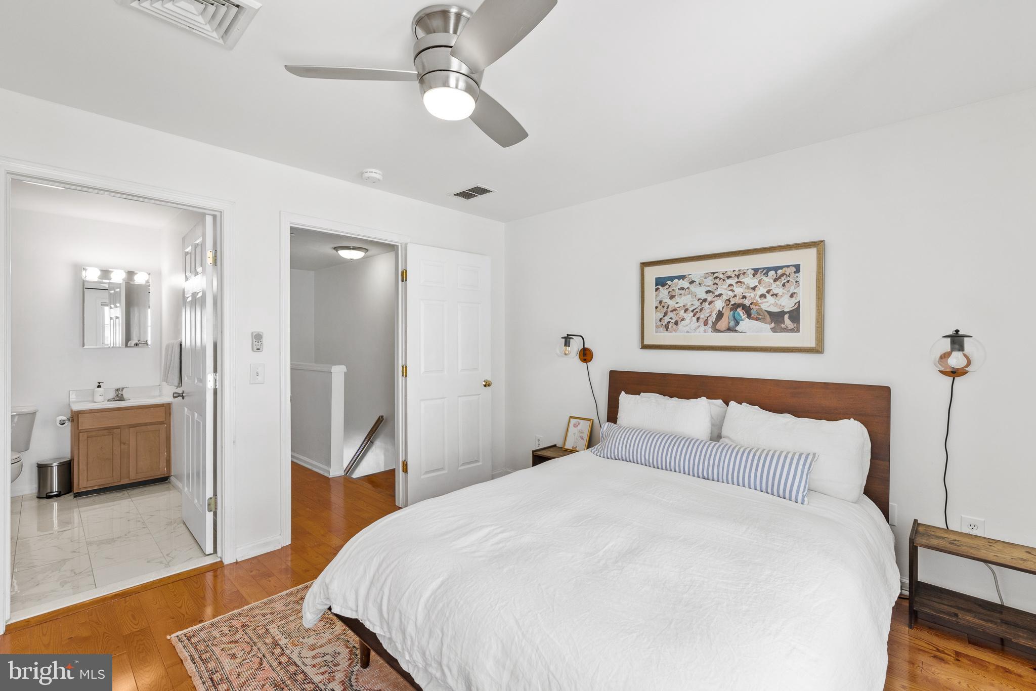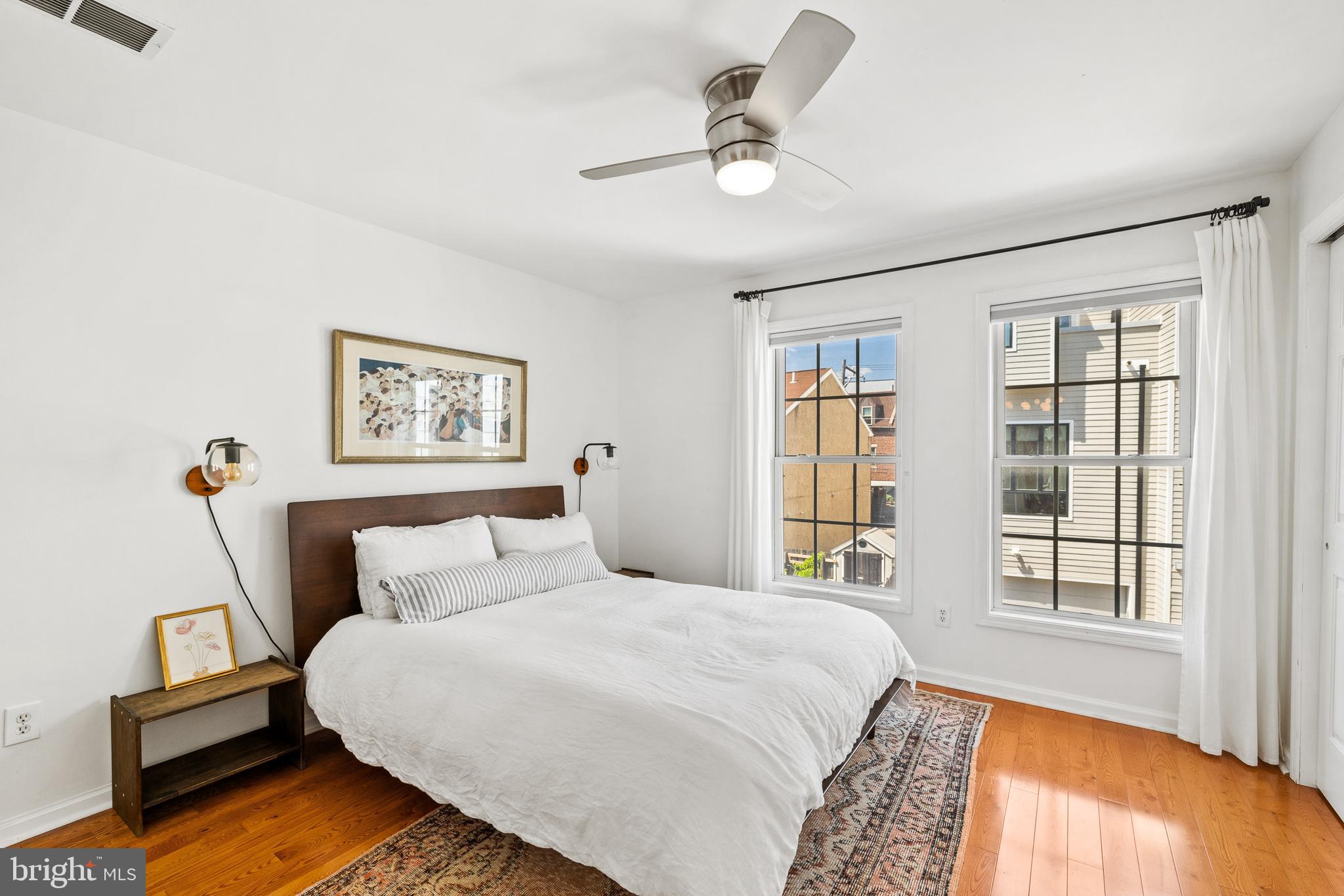 Don't let this opportunity pass you by! This charming home offers the best of city living with the convenience of driveway parking and up to two additional parking spots in a neighboring lot. Located on a quiet street, this brick-front home features a wide layout with hardwood floors and a recently updated kitchen. The first floor boasts a spacious living room, dining area, kitchen, and a powder room, all flowing seamlessly into a huge outdoor patio perfect for entertaining. Upstairs, you'll find two nicely sized bedrooms, each with its own en-suite full bathroom. The finished basement provides a versatile space that can be used as a playroom, gym, or office area. Additionally, there's a separate laundry and storage area in the basement, and great closets throughout the home. Enjoy neighborhood favorites like Cafe La Maude, Honey's Sit and Eat, and North 3rd. Plus, you're just a short walk to the Spring Garden Station, making commuting to Center City and beyond a breeze.Don't miss out on this exceptional home ready for its new owner!