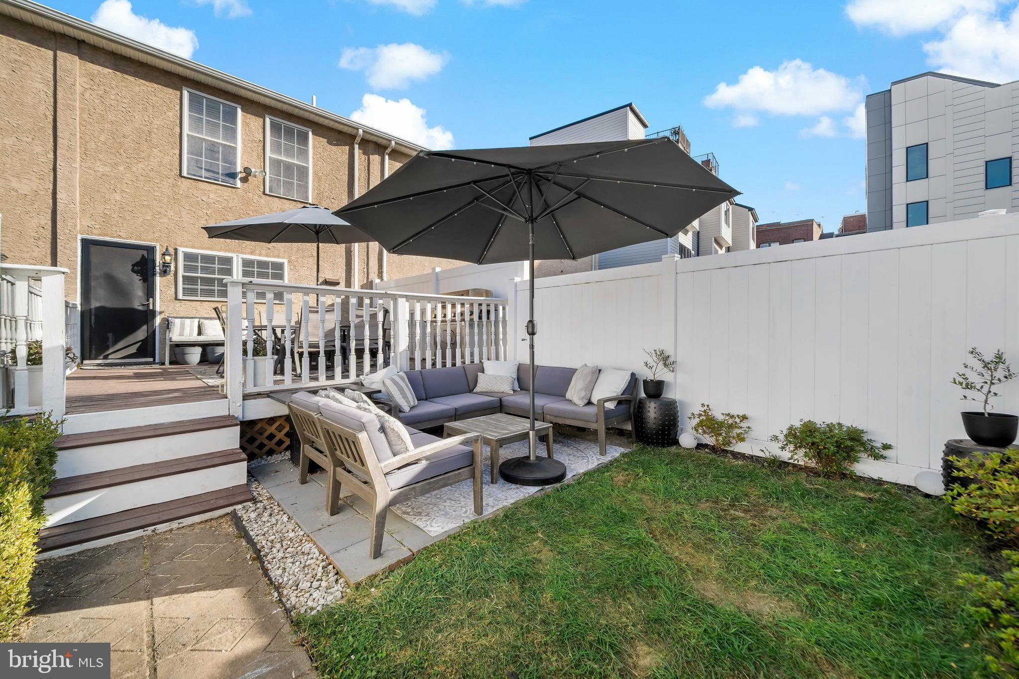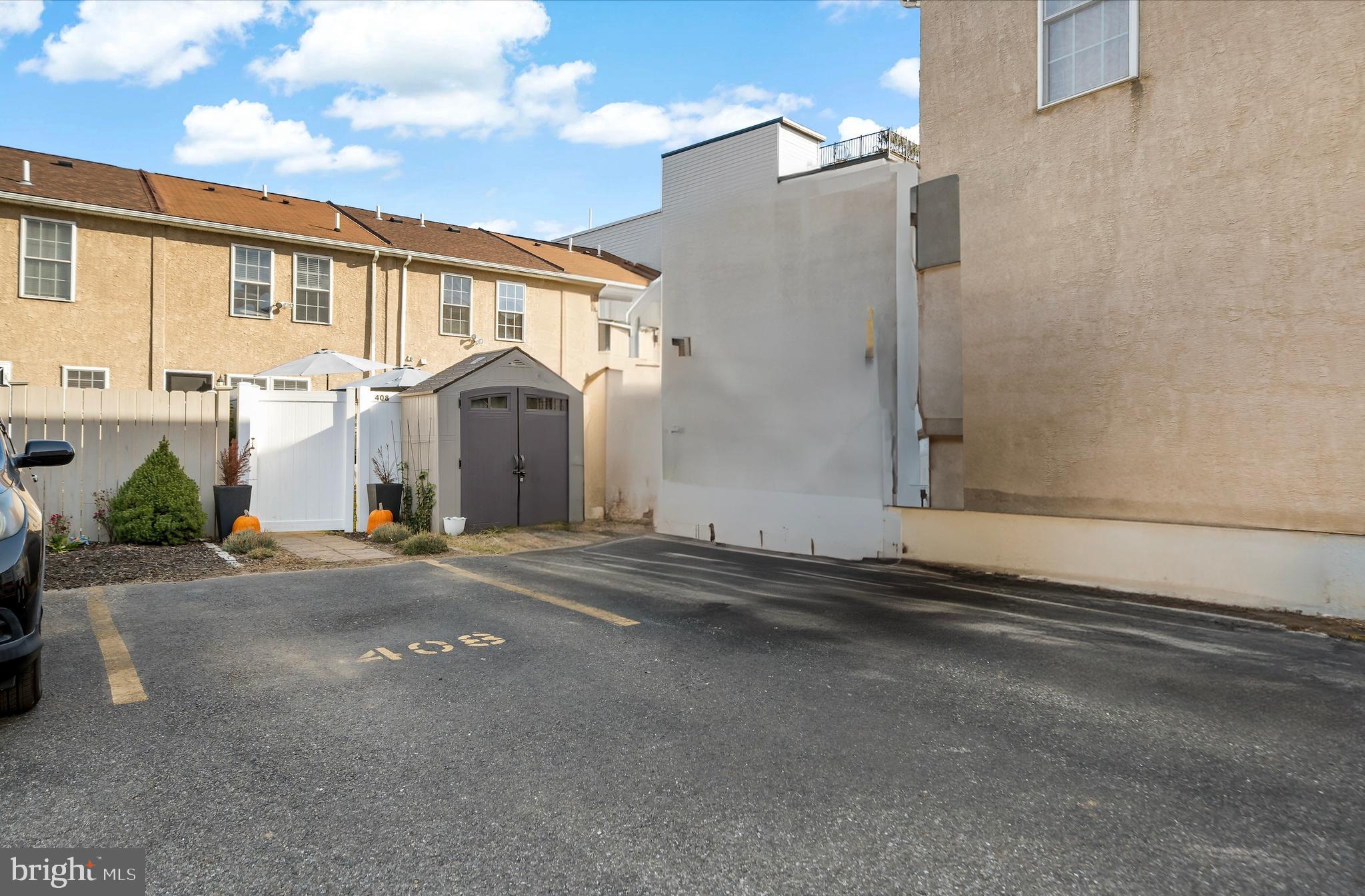 Don't miss this rare opportunity! This charming brick-front home offers the best of city living, featuring 2 deeded parking spots right outside your backdoor, plus 2 additional guest parking spots. Situated on a quiet street, the home boasts a spacious layout. The main floor includes a generous living room, a separate dining area, a kitchen with an island and pantry closet, and a powder room--all leading to a large deck and patio, perfect for entertaining. Beyond the gate, a storage shed and two parking spots complete the outdoor space.