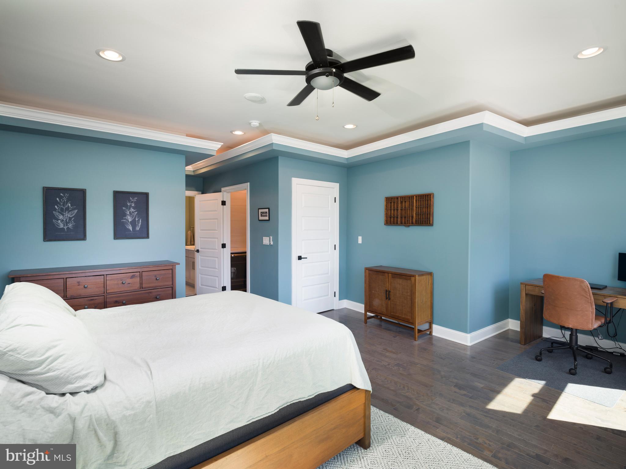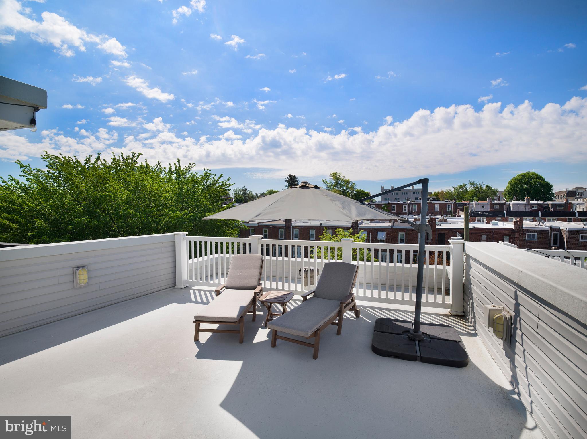 The third-floor primary suite is your personal retreat. It spans the entire level and features a tray ceiling with ambient lighting, an oversized walk-in closet, and a spa-like bath with dual showerheads, stylish tilework, and abundant natural light. Just outside the suite's wet bar, step up onto your private roof deck--an ideal space to unwind, sip your favorite drink, or entertain guests while soaking in expansive skyline views and fresh air.