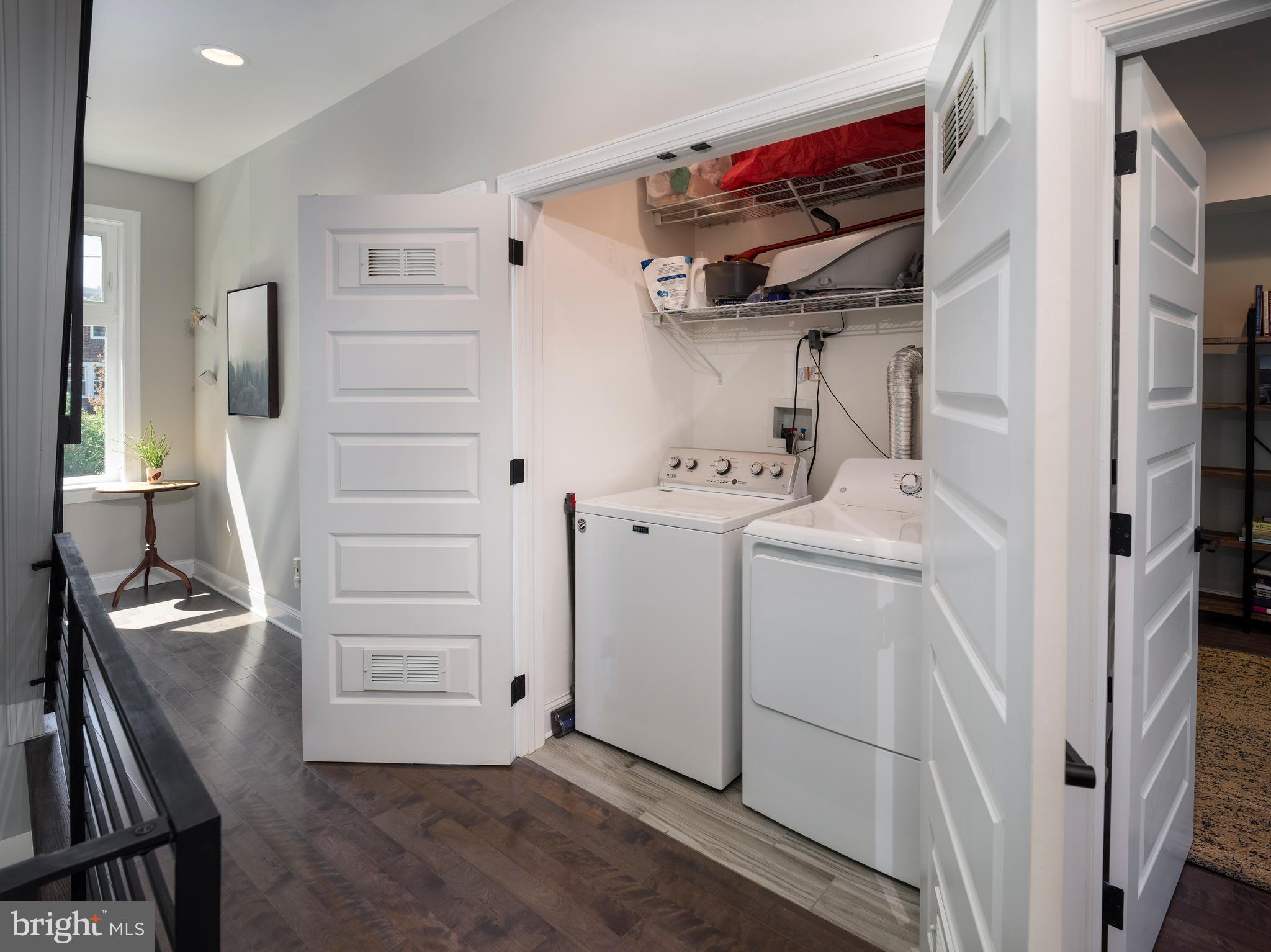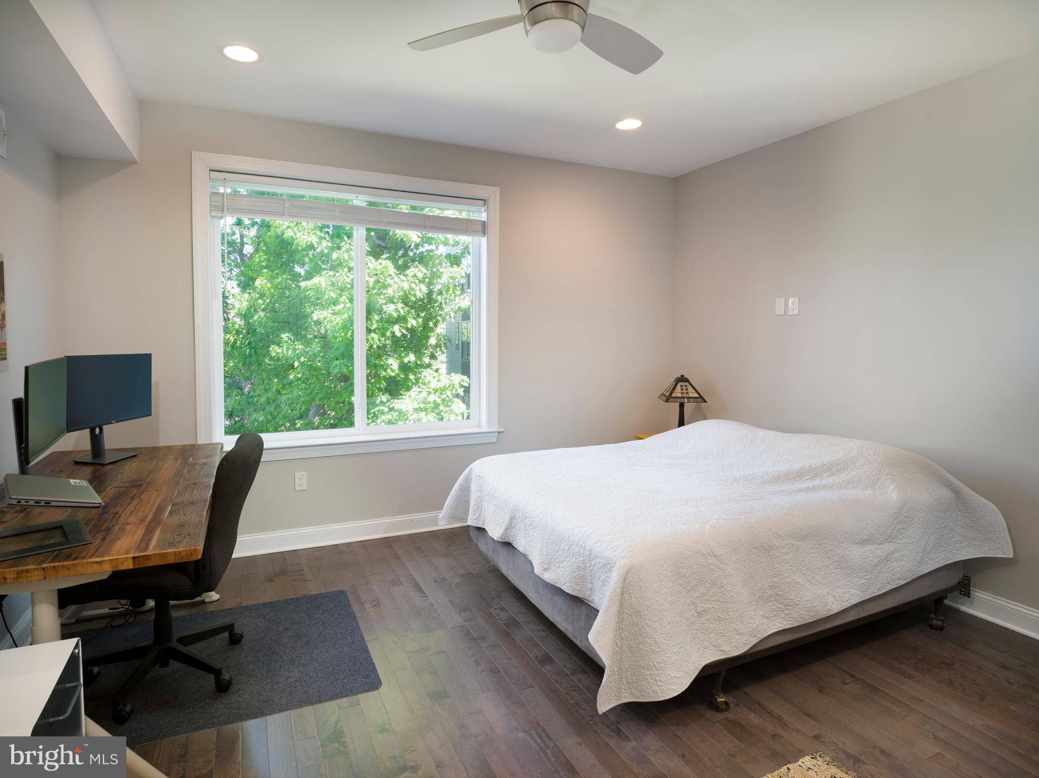 Upstairs, you'll find two generously sized bedrooms, each filled with natural light and equipped with ceiling fan/light combos. A beautifully finished full bath and a discreet laundry closet make this level as functional as it is comfortable.