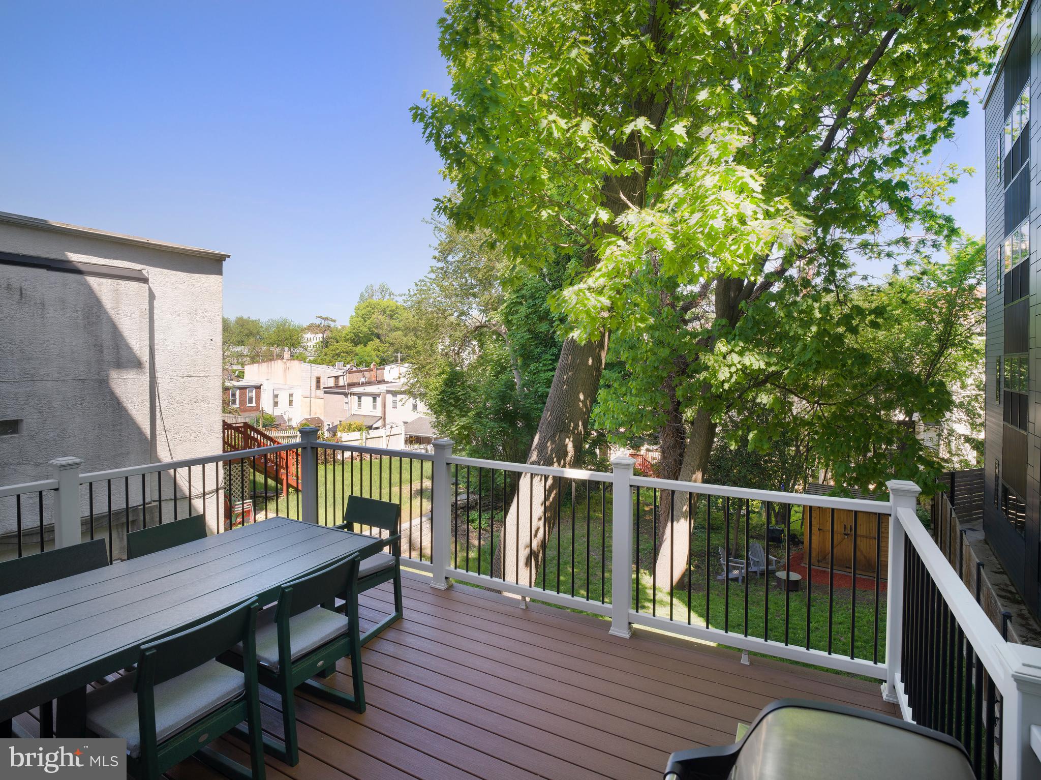 The kitchen is a true showstopper. Outfitted with shaker-style cabinetry, granite countertops, GE stainless steel appliances, under-cabinet lighting, and a large dining counter, it's a space designed for both daily living and weekend entertaining. Just off the kitchen, a conveniently placed powder room adds ease for guests--but the real bonus lies just beyond the sliding glass doors: a newly installed 14x16 Trex deck. This elevated outdoor space is perfect for al fresco dining, weekend grilling, or simply unwinding with a glass of wine as you overlook the beautifully maintained backyard. Built for durability and low maintenance, the deck offers a seamless indoor-outdoor flow that makes entertaining effortless and everyday living feel like a retreat.
