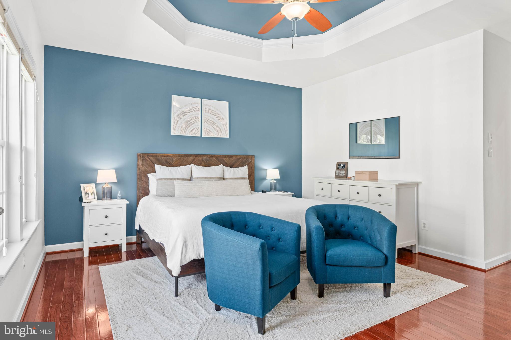 Step inside to find gleaming hardwood floors throughout, soaring tray ceilings, and an open-concept layout perfect for both relaxing and entertaining. The gourmet kitchen features top-of-the-line Viking appliances and flows seamlessly into the spacious living and dining areas. Enjoy morning coffee or evening sunsets on the oversized deck -- ideal for outdoor dining or simply unwinding.