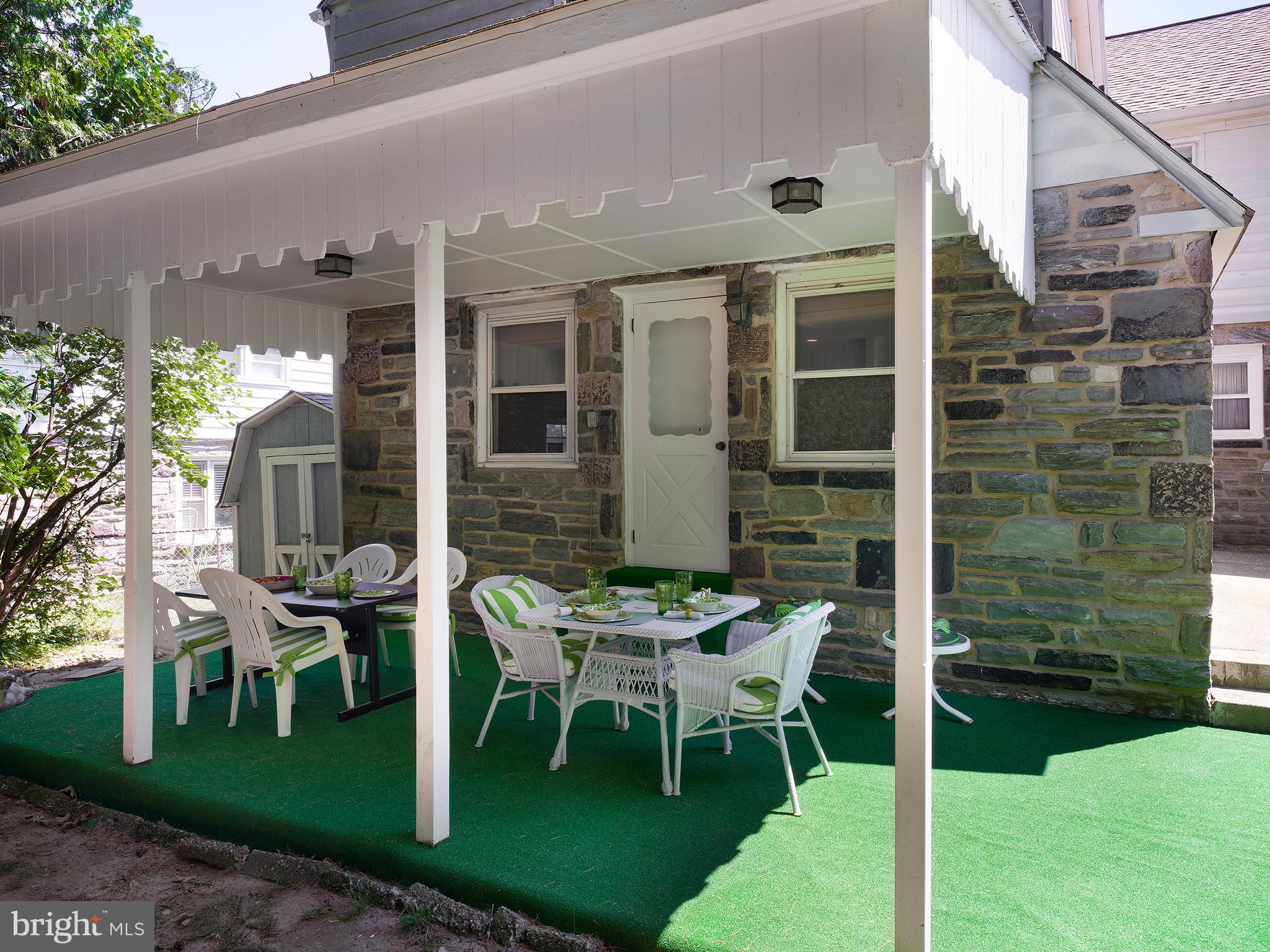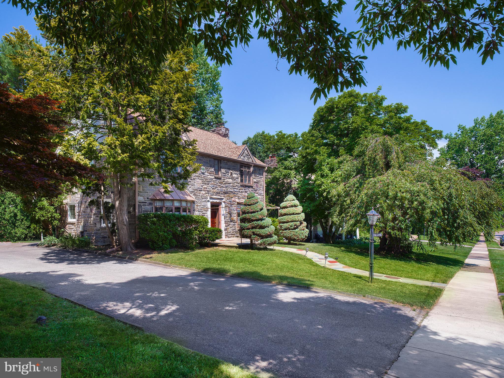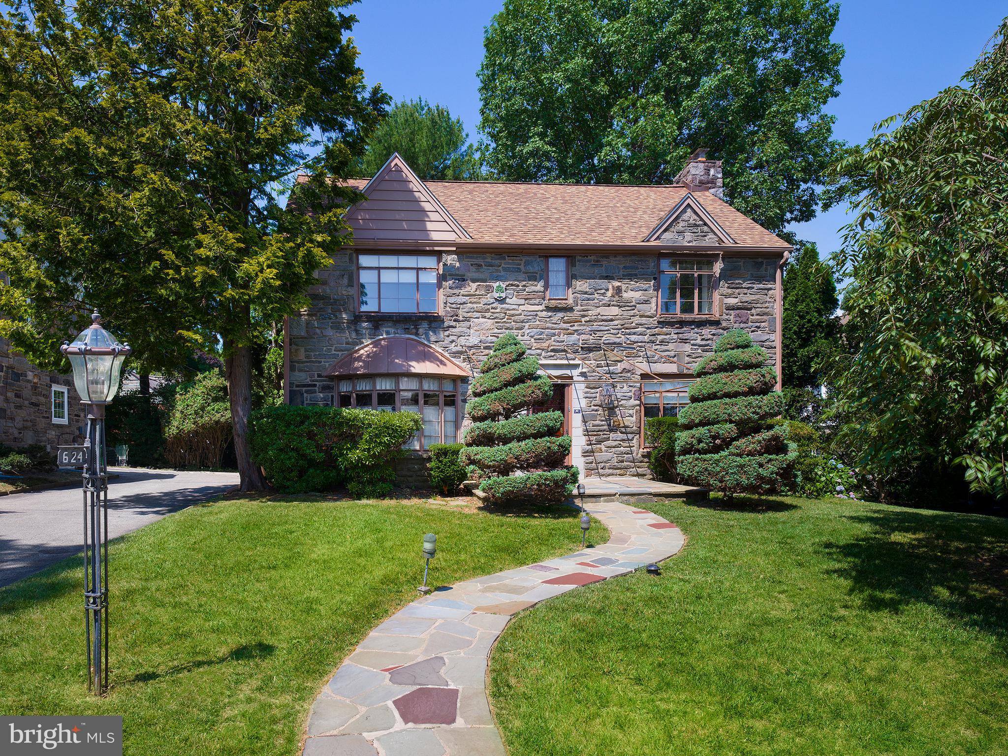 Welcome to 624 Greythorne Road, a classic stone colonial home nestled in the middle of a picturesque block. This beautifully maintained property boasts professional landscaping, featuring cherry trees that blossom in spring and elegant magnolia trees. Enjoy two outdoor seating areas: sit privately in the front yard under a soft brown and white striped awning, or relax in the rear under a covered wooden porch. Enter through the center hall to discover a traditional layout. To the left, the dining room impresses with built-in cabinetry and a charming bay window overlooking the front yard. To the right, the living room features a wood-burning fireplace with a handsome stone surround. Most rooms on the first floor feature parquet flooring, with tile in the kitchen and carpet in the family room. The family room is paneled in wood and includes doors for added privacy. The first-floor laundry room has a new sink, while the renovated powder room features a quartz countertop. The kitchen, with its tile floor and eat-in area, opens to the driveway and the covered patio, making it convenient for outdoor dining and entertaining. The finished lower level serves as a recreation room with ample storage. Upstairs, a staircase with a brass railing leads to four spacious bedrooms and two bathrooms. A homework station/home office nook offers convenience. The primary bedroom is appointed with a wall of built-in cabinetry and an Italian marble bathroom with a shower and bidet. A cedar closet on the second floor and generous closet space throughout the home offer abundant storage. A private rear patio has an awning and is perfect for covered outdoor dining, entertaining or relaxation. Its prime location is ideal, just two blocks from South Ardmore Park and close to Suburban Square, local supermarkets, train stations, and SEPTA bus routes. The property is situated within the award-winning Lower Merion School District. Embrace the opportunity to live in a classic Main Line colonial that offers both character and convenience. Let 624 Greythorne Road welcome you into the next chapter of your story, where every corner is filled with love, laughter, and the promise of new beginnings.